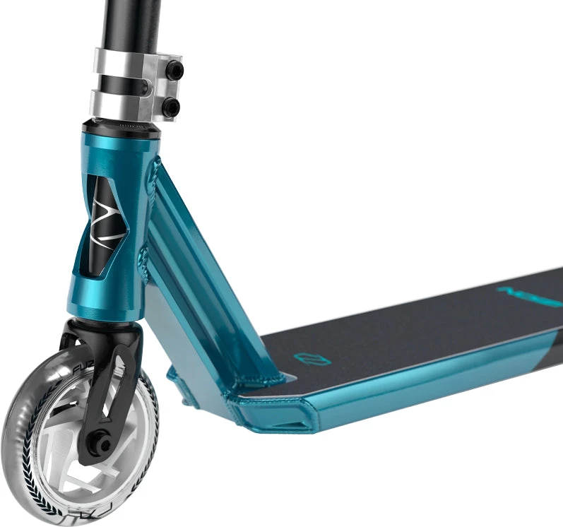 The Z300 returns as the best value intermediate pro complete on the market and remains a perfect balance between elite performance and affordability. This scooter comes with some incredible parts including 110mm x 24mm Apollo wheels, a lightweight 6061 T6 aluminum deck, IHC compression system, ABEC 9 bearings and so much more. The 2022 Fuzion Z300 is available in aqua, black, purple and silver color ways. Get yours today at Scooter Zone!