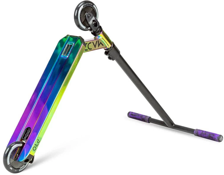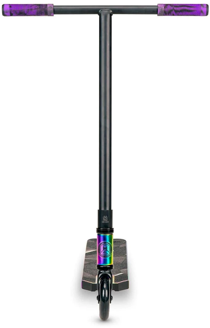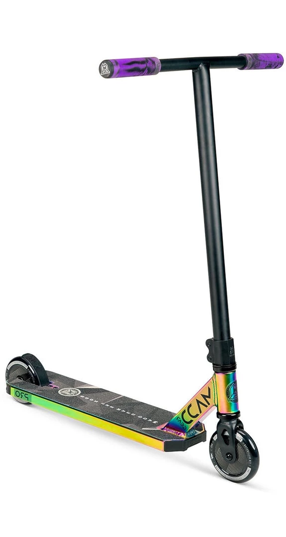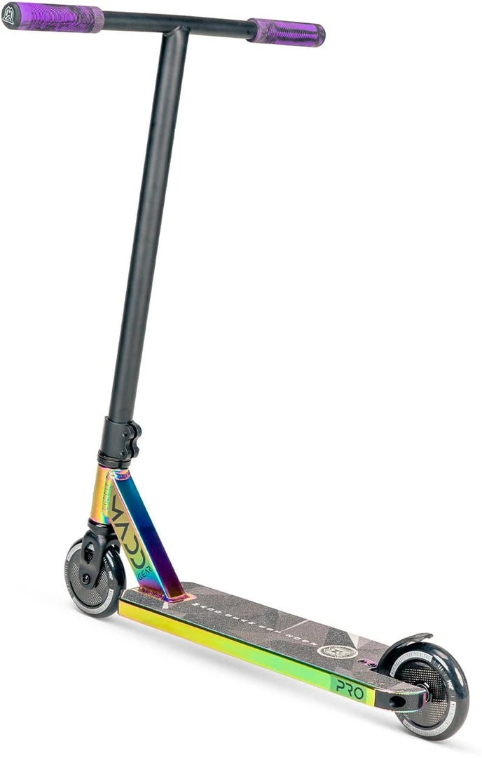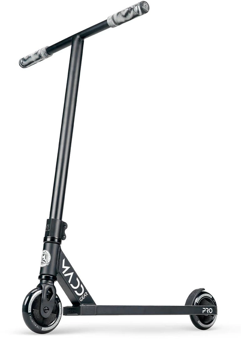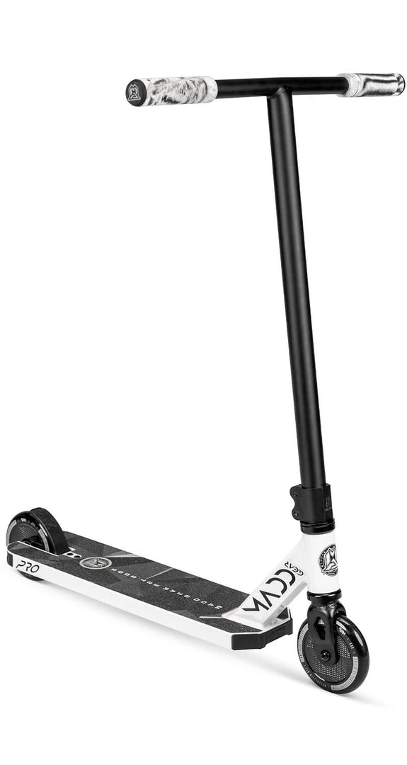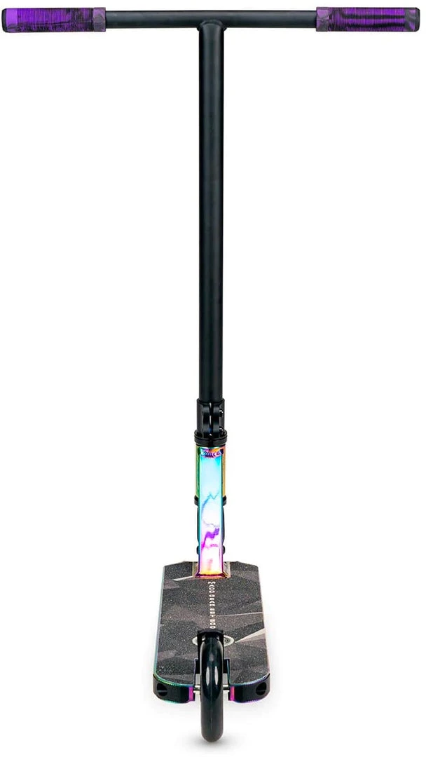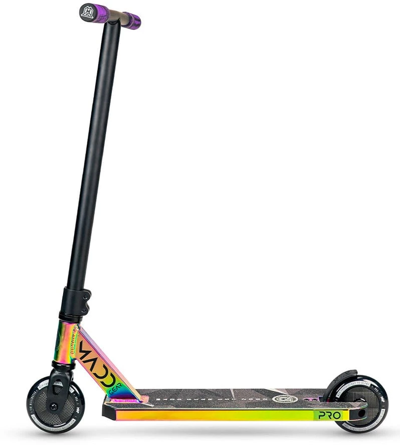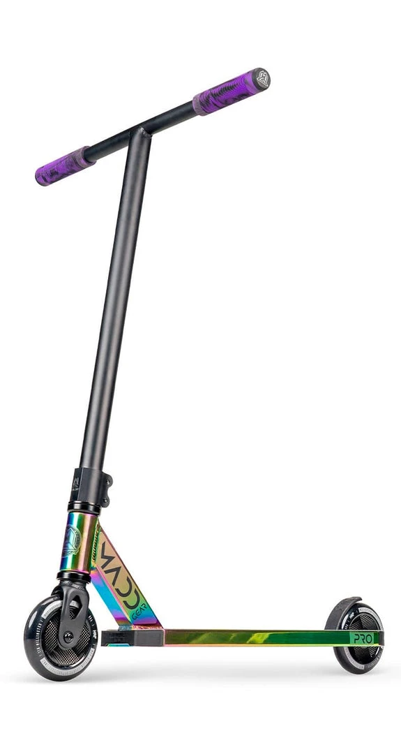 The Madd Gear Renegade Pro stunt scooter is designed for riders 6 years and up looking for a high quality light-weight complete. The Renegade Pro comes in slightly larger than the Rascal model and is designed for young riders looking for a light and strong complete to dial in their tricks. The 19″ long by 5″ wide deck allow for ample foot space when landing all your tricks! This scooter is available in both powder coated and neo chrome finishes. Get yours today at Scooter Zone!
