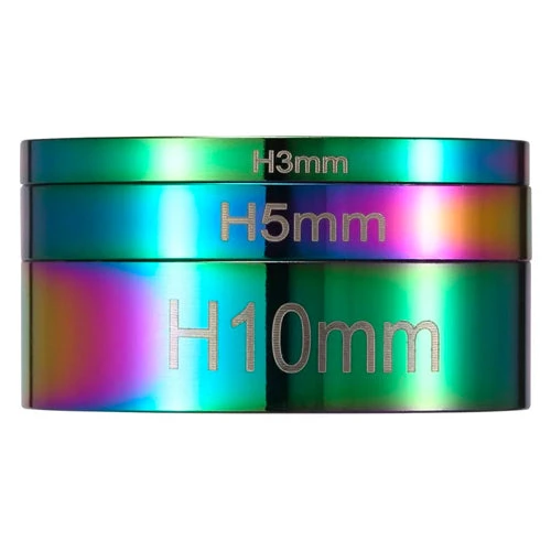 If you’re ever in a pinch and you want to extend your bar height slightly, need to run an SCS but need a little less fork height, or you just want a little space between your headset cap and your headset, grab a set of Envy bar spacers. Available in black, oil slick and chrome.