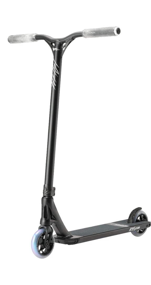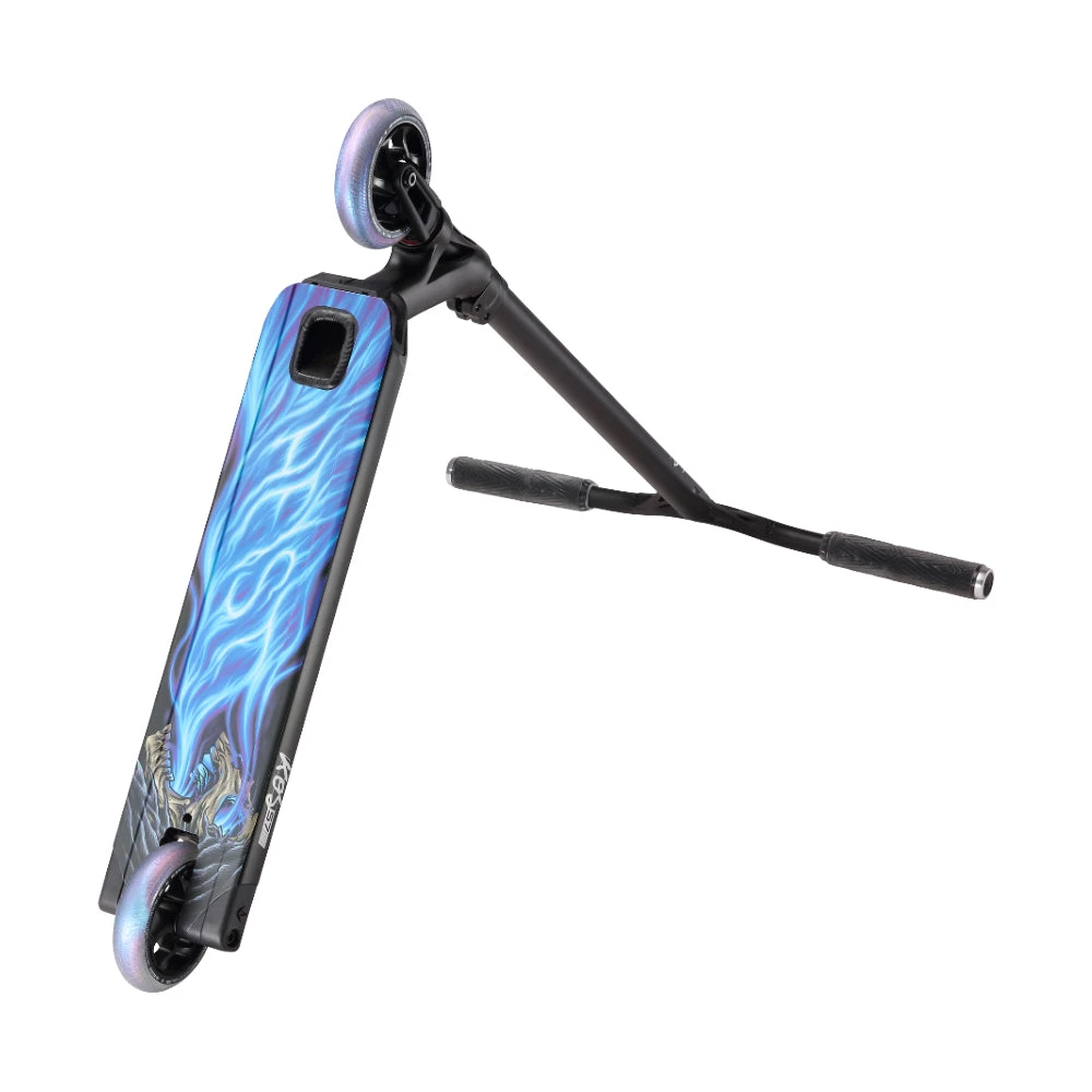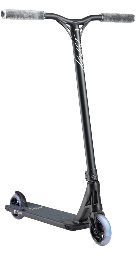 This KOS Heist Series 7 has been seriously upgraded this year & is ready to roll into 2022. The KOS S7 has the most aftermarket parts of any Envy complete pro scooter ever produced. The thing we love the most about the KOS line is that it is ready to go straight out of the box…and the KOS S7 Heist is definitely no exception. The new features on the KOS Heist include Will Scott signature handgrips which offer a thicker feel to the scooter and also include aluminum bar ends, IHC Envy Declare forks which are holding the newly included 120mm x 30mm galaxy / black Envy Tri Bearing wheels & the AOSV4X aluminum deck! Envy took the original AOSV4 deck and added the KOS cut out in the front and we must say…it looks exquisite! We are so excited to offer this complete scooter as well as the other scooters in the KOS S7 line which are the KOS S7 Soul & KOS S7 Charge here at Scooter Zone!