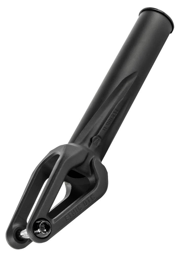 The Legion fork was created for one reason and one reason only, to give the sport a reliable fork for as cheap as possible. The V1 Legion fork was a great advocate for any rider looking to save some money on his/her build. The V2 is nothing short of another hurdle crossed for Ethic. This fork has the same great look that the V1 Legion fork did, but with a carved fork tube as well as FINALLY introducing the new IHC version. Grab yours today at Scooter Zone!