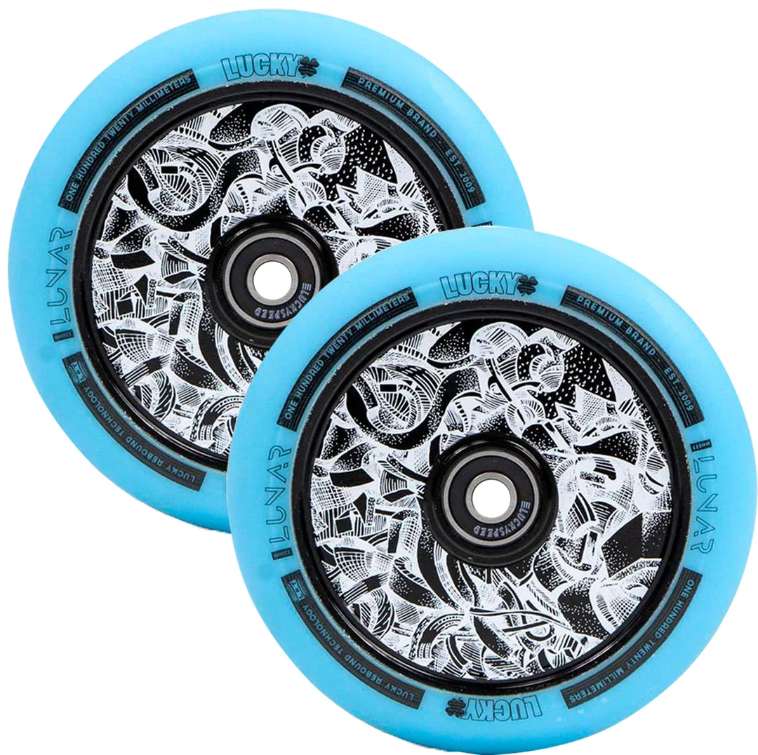 The Lucky Lunar 120mm hollow core scooter wheel is one of the lightest wheels in the Lucky wheel quiver. They feature Lucky Rebound Technology (LRT), a combination of high-performance urethane, a new pouring process, and a proprietary curing method which gives these wheels a grippy, fast, and buttery roll. The Axis wheel features a teal pink urethane with a black anodized core and an etched core graphic. This wheel is also available in a 110mm version. Grab yours today at Scooter Zone!
