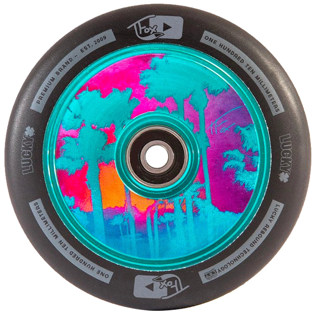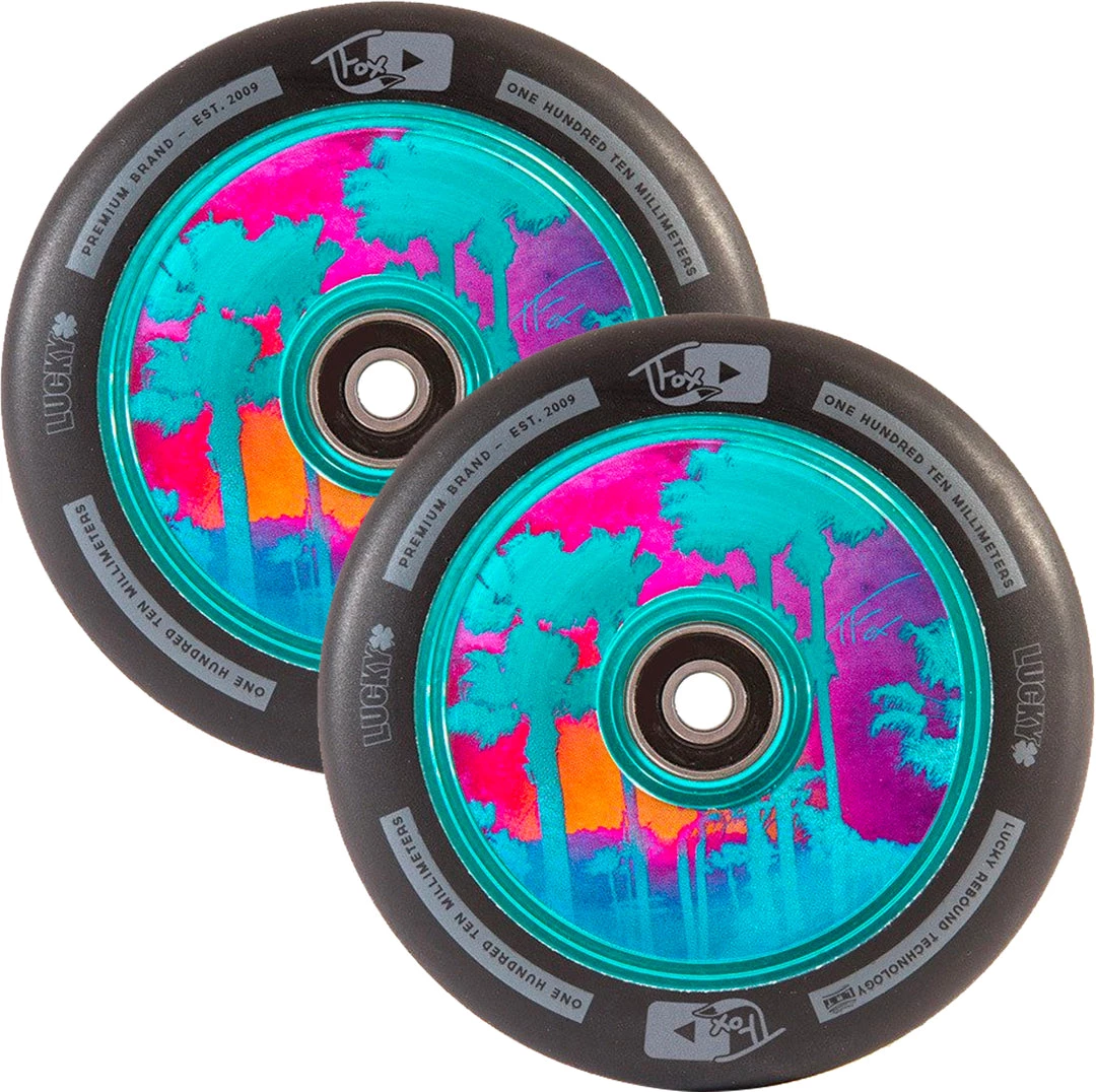 Tanner Fox is loved by millions and millions and millions of people across the world. Lucky’s Lunar wheel is also loved by millions of scooter riders. Why not join the two? Introducing the Lucky Tanner Fox signature Lunar wheel! This wheel comes in at 110mm x 24mm in size, includes high speed ABEC9 lucky bearings & has a hydro printed tanner fox sunset graphic in both black as well as teal color options. This is such a unique wheel in so many ways. If you enjoy watching Tanner Fox’s Youtube videos and you want to support the man himself, grab a set of Lucky Tanner Fox signature wheels today at Scooter Zone!