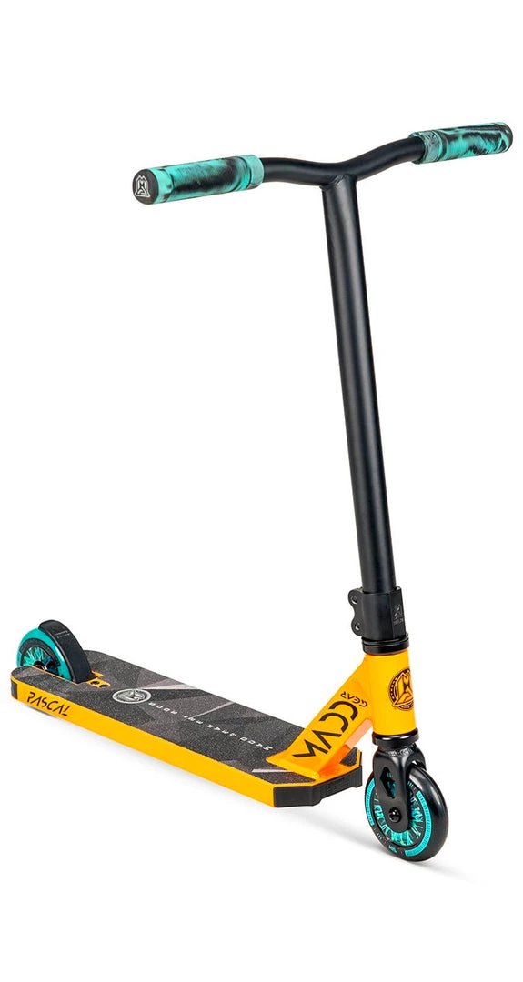 The Madd Gear Renegade Rascal stunt scooter is designed for younger riders looking for a quality light-weight complete. The Renegade Rascal handlebar and deck dimensions are designed for shorter riders to comfortably dial in their tricks while the wide 5″ wide deck allow for a stable platform for stomping new learns. Available in durable powder coated finishes for beginner to intermediate riders 4 years and up. Get yours today at Scooter Zone!