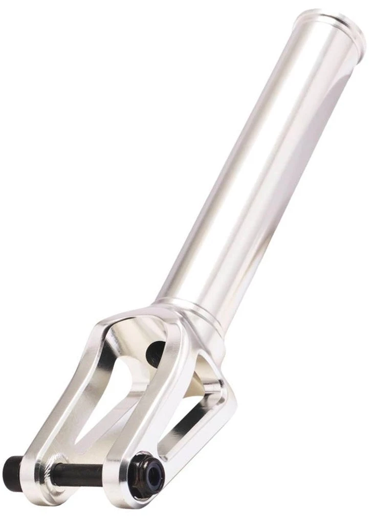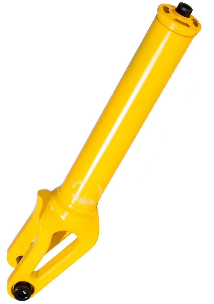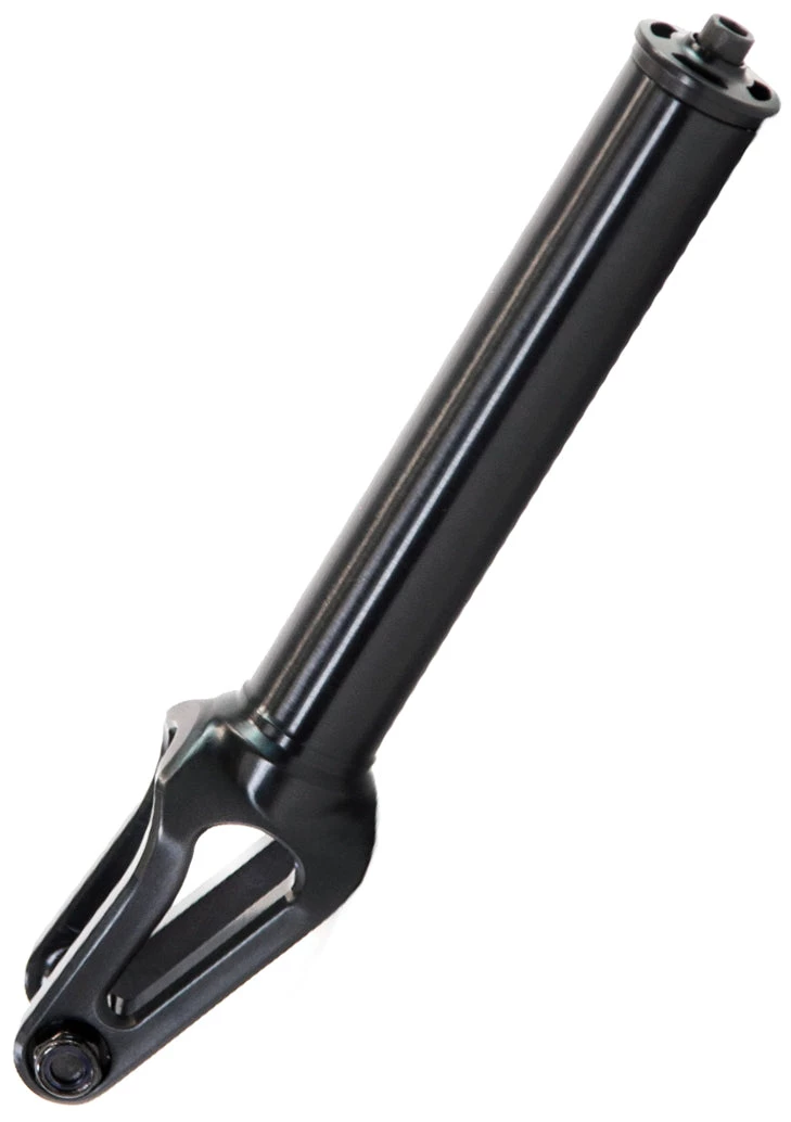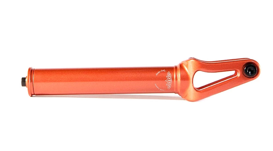 The North Amber fork, the fan favorite fork from North Scooters. This fork is such a delight to carry in our store. Coming in at just 12.5 oz, this fork is compatible with any SCS / HIC compression systems. The internally threaded fork tube makes having to worry about cross threading bolts a thing of the past. Compatible with up to 120mm x 24mm wheels, you really can’t go wrong with this fork. Whether you’re riding a full park set up or you’re a ledge/rail master and want something reliable, get your hands on a North Amber fork. You won’t regret it.