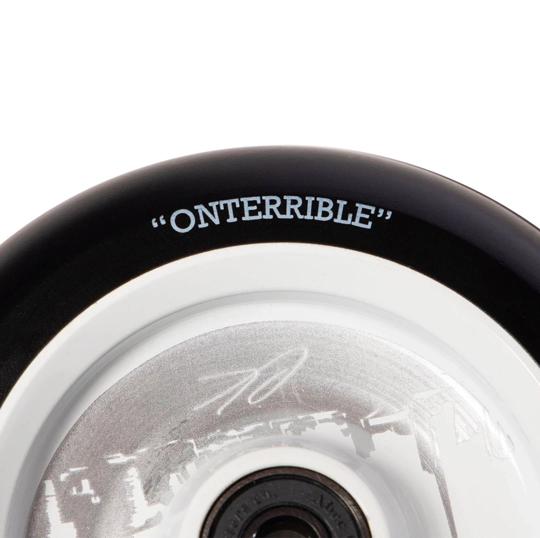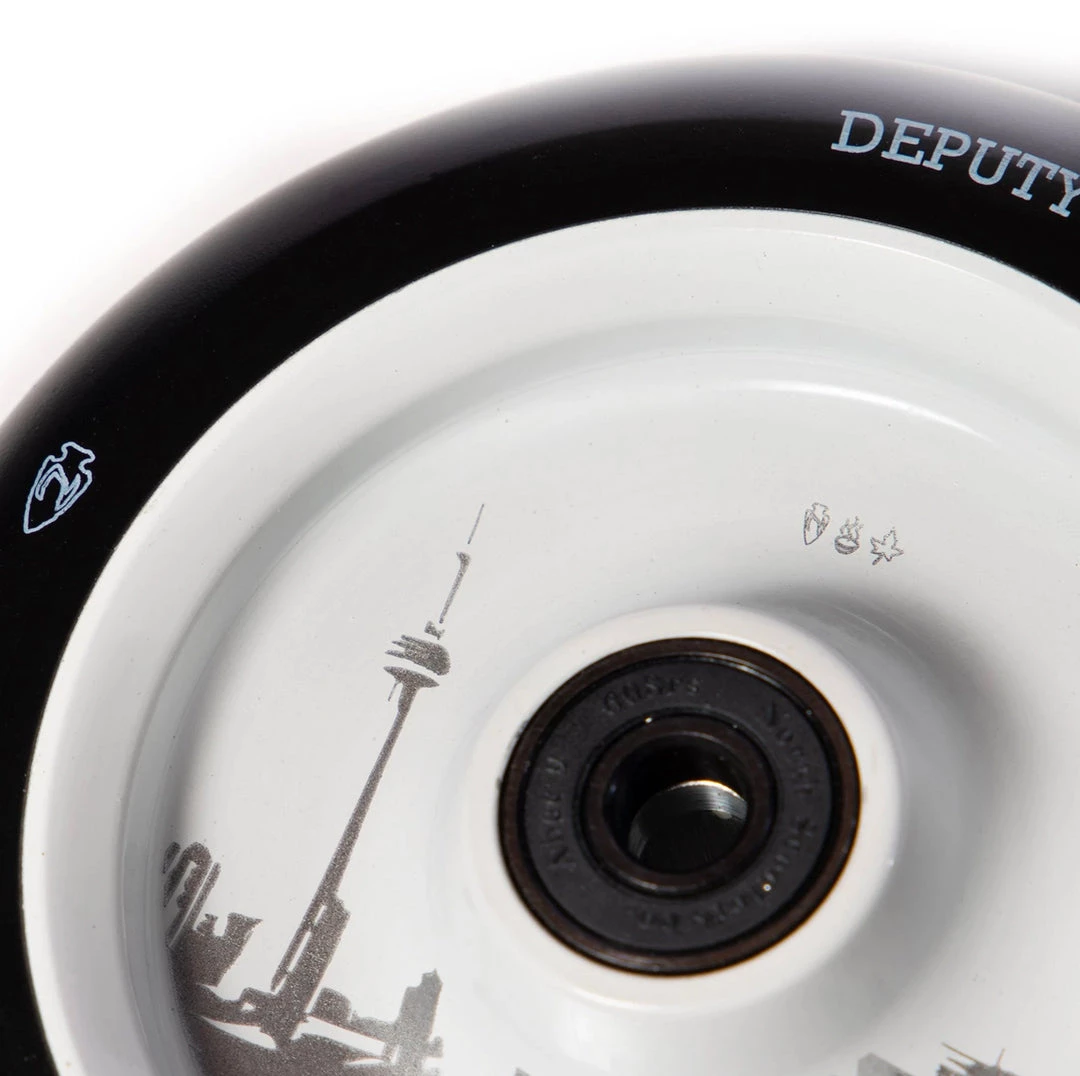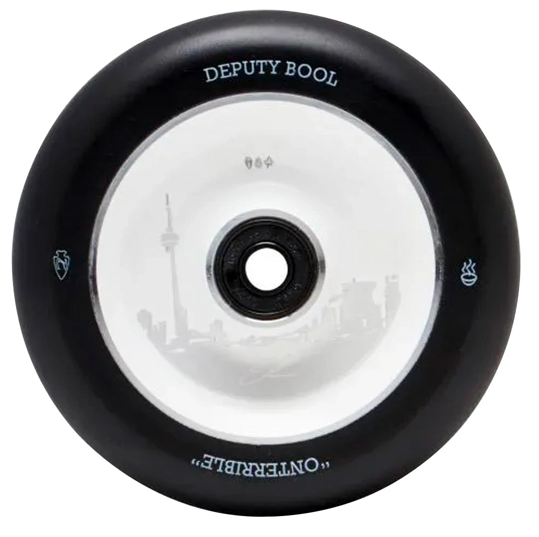 The Ethan Kirk signature scooter wheel is one of the nicest scooter wheels we’ve seen. This 110mm x 24mm scooter wheel keeps a low-key look to any scooter but performs incredibly. More about these scooter wheels in Ethan’s own words; ” My wheel incorporates everything that is the east crust Onterrible. You’ve got the beautiful Toronto skyline, you’ve got a maple leaf, and some hot soup. What could be better than that? In all seriousness, Toronto’s always close to my heart, and I’m proud to call this place home, and have it featured on my wheels. Hope y’all like em.”. If you’re looking to get one of the best scooter wheels in scootering, grab your Ethan Kirk signature wheels today at Scooter Zone!