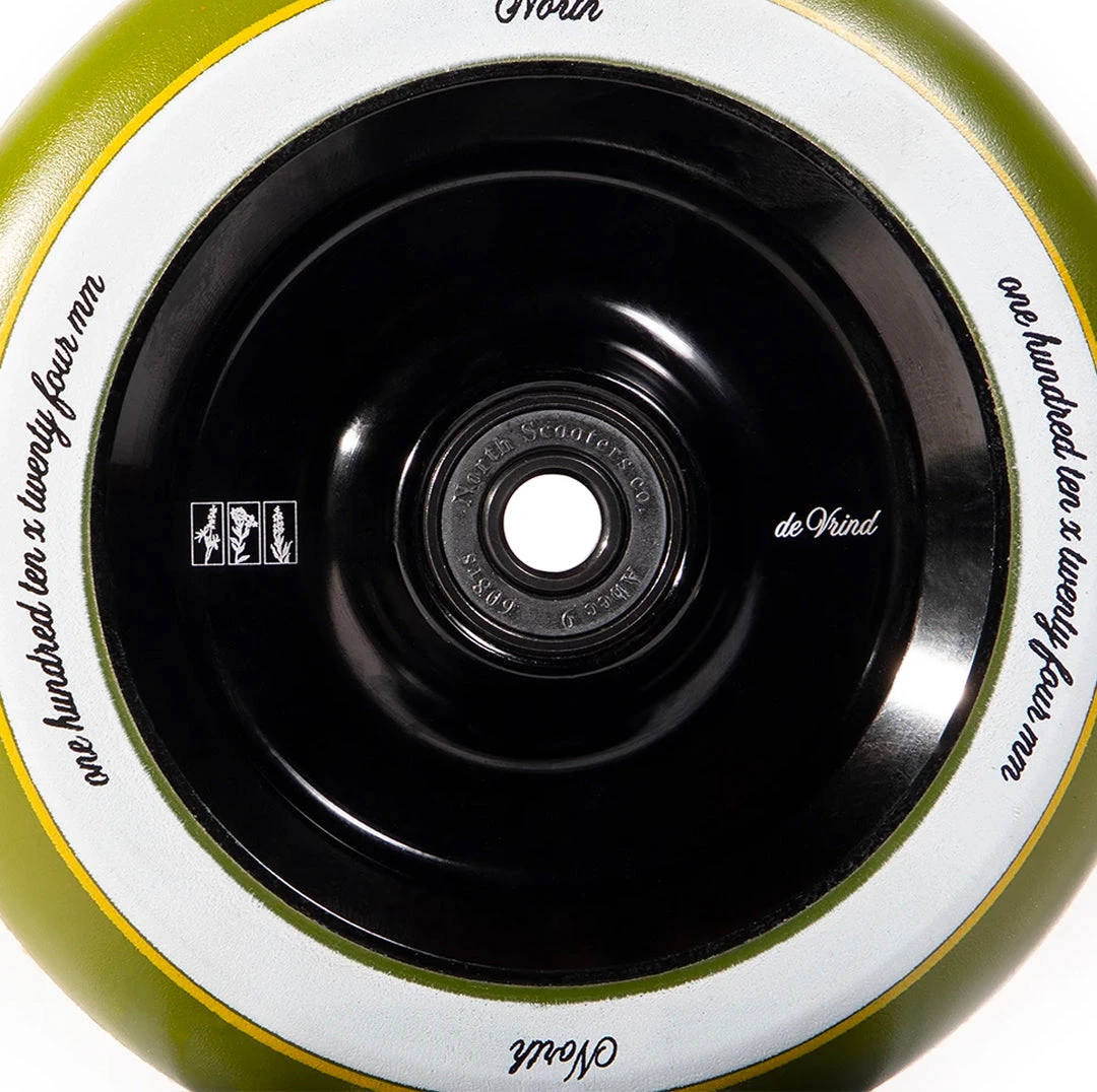 Jon Devrind is one of the worlds most talented and technical riders and has been for some times. His nose manual combos are absolutely mind boggling and so are the wheels that he is riding. Jon went with an olive green on black colorway which looks incredible. Jon kept a relatively minimal core graphic with his signature on one side and a corn graphic on the opposing end. Another incredible part from North for an incredible rider.