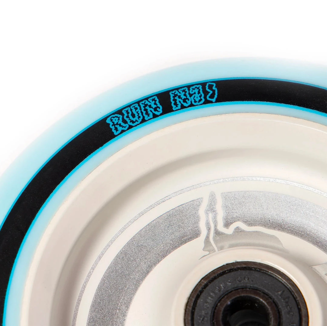 The Jordan Tutt signature scooter wheel is one of the cleanest scooter wheels we’ve seen. This 115mm x 30mm scooter wheel is comes in a super clean baby blue on white colorway. More about these scooter wheels in Jordan’s own words; “Well as everyone knows I’m from jersey and my design is based off the logo for the golden state parkway, I’ve always thought that it was kind of sick. I also have Run NJ on there because that’s me and my homies lil clique. My favorite color is also light blue, so that’s the reason for the urethane and the rest is history!”. If you’re looking to get one of the best scooter wheels in scootering, grab your Jordan Tutt signature wheels today at Scooter Zone!