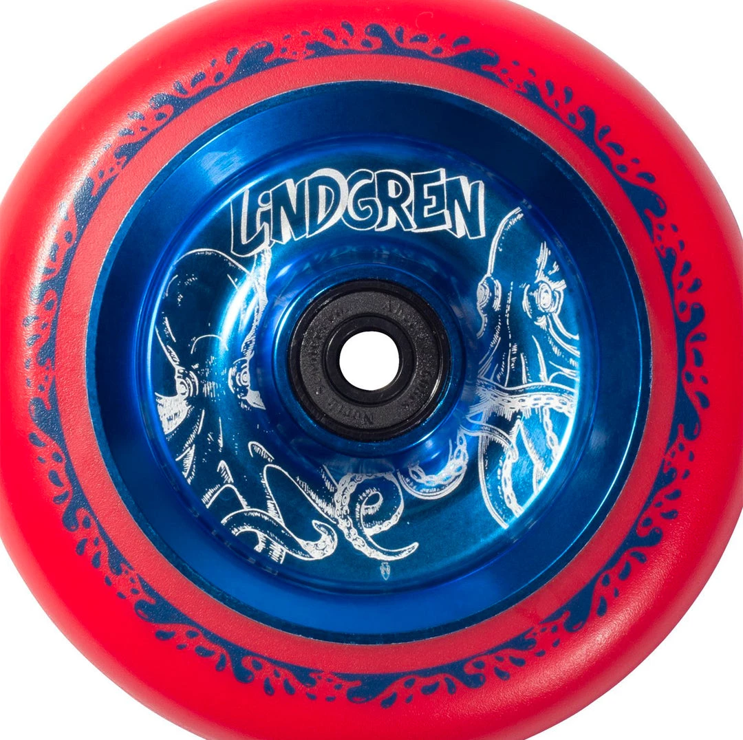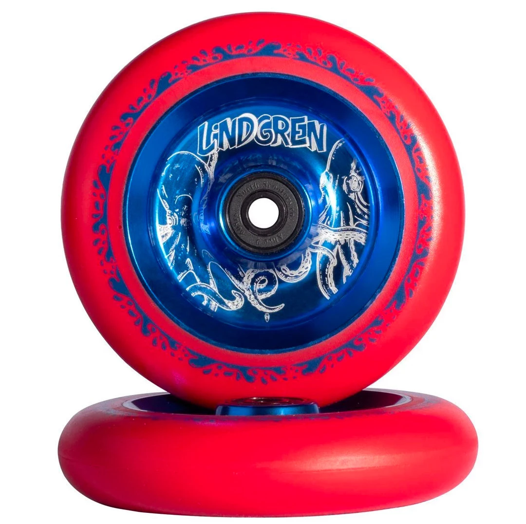The Leon Lindgren is one of the most stand-out scooter wheels on the market today. This 115 x 30mm scooter wheel is comes in a vibrant red on blue color way. The wheel features a dual octopus design on the color as well as a dark blue urethane print which works oh so well with this design. The 88A urethane hardness is ideal for smooth skatepark riding, but if you want to take this wheel in the streets you will still have an extremely solid ride. If you’re looking to get one of the best scooter wheels in scootering, grab your Leon Lindgren signature wheels today at Scooter Zone!