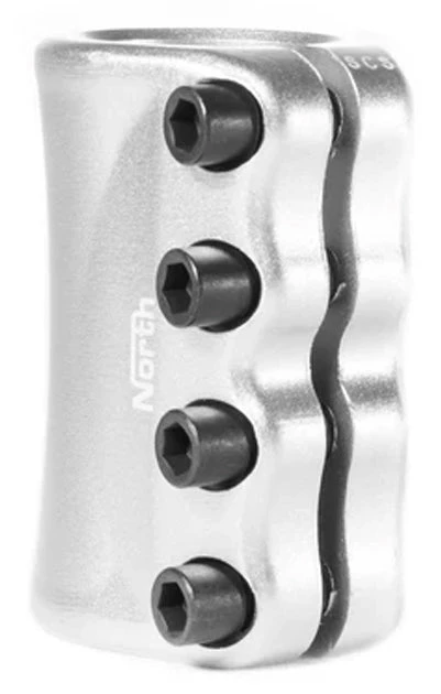 The North Profile SCS clamp is one of the cheapest SCS clamps in scootering. This clamp features some of the most desired specs including 6mm bolts, oversized / standard compatible, reverse spreader bolt & much more! Like all SCS clamps, this clamp is only compatible with non-slit bars or bars with SCS adapter shims. The hourglass shape of the North Profile SCS keeps this clamp super lightweight and keeps that sleek look continuing throughout the center of your scooter. Grab one of the North Profile SCS clamps while supplies last at Scooter Zone!