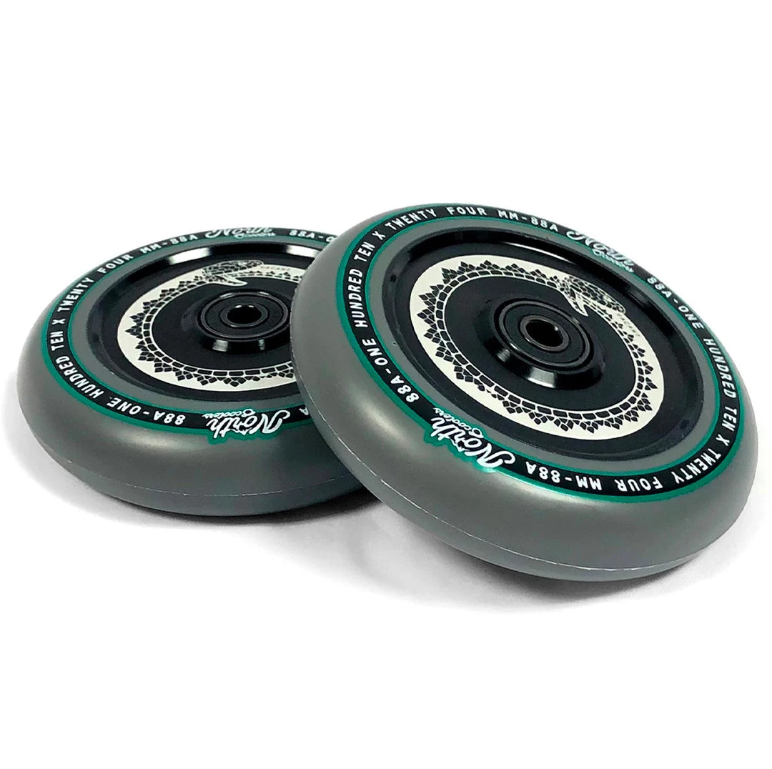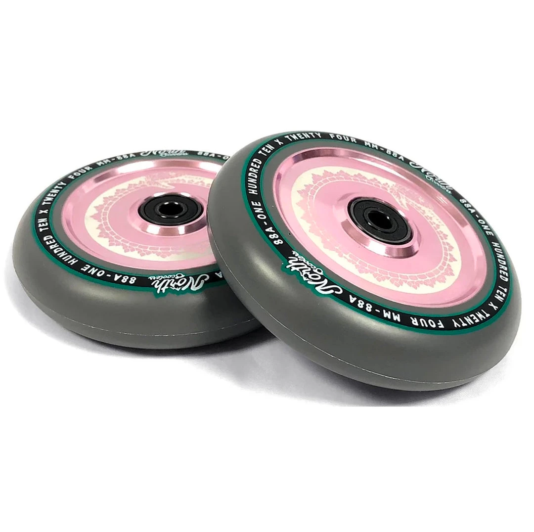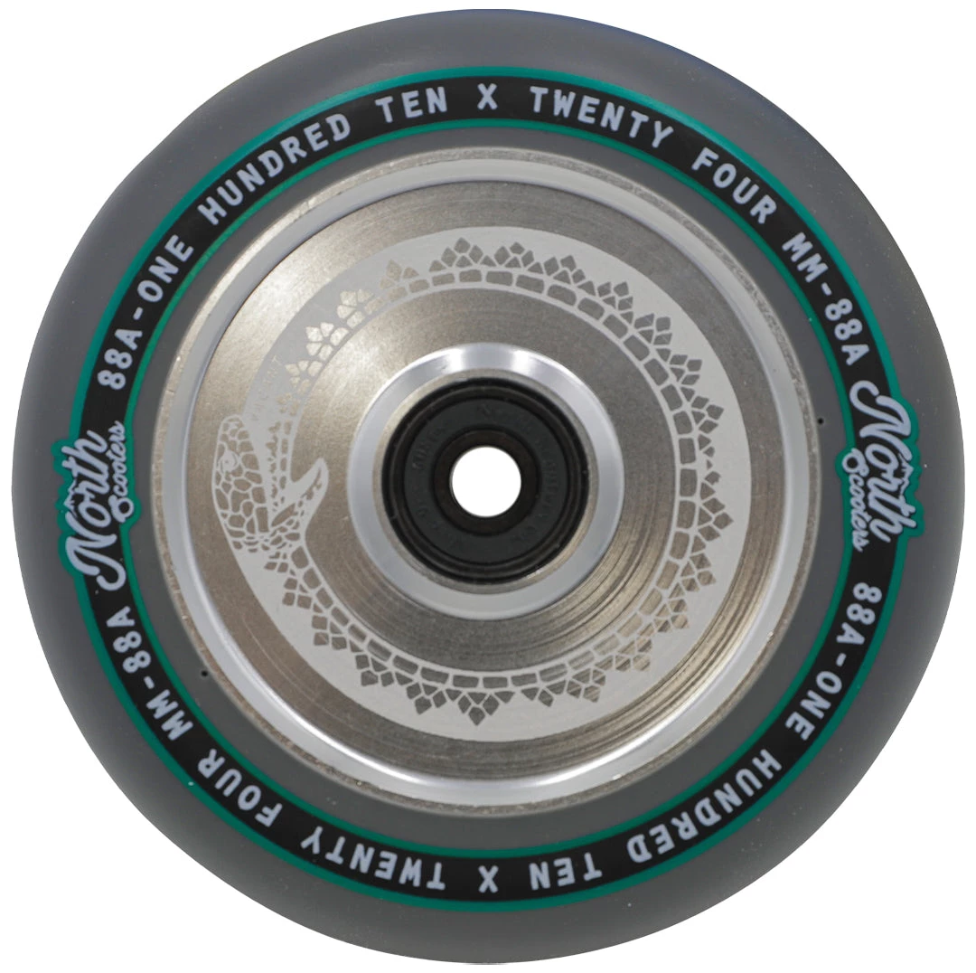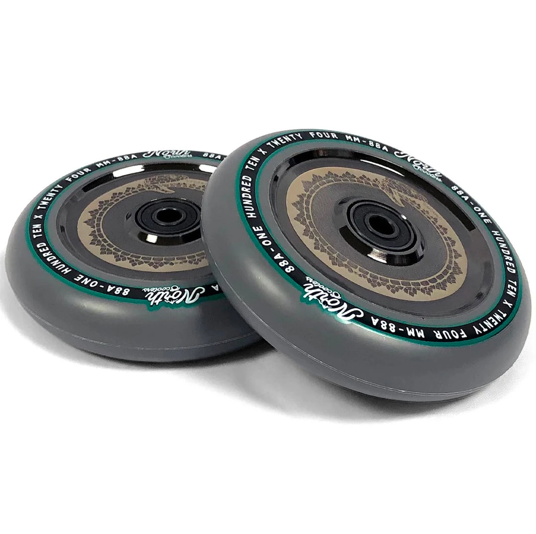 North scooter wheels have proven to be some of the fastest scooter wheels as well as the smoothest that we have ever seen. This 110mm x 24mm North Vacant scooter wheel keeps a low-key look to any scooter but performs incredibly. The North Vacant Wheel feature hollow core technology making them extremely light. These hollow cores paired with an 88a high rebound urethane make for a scooter wheel that is both lightweight and durable. These wheels come equipped with North’s ABEC9 bearings to keep your rolling for as long as possible. A vailable in silver, rose gold, oil slick, matte black & black chrome core color options If you’re looking to get one of the best scooter wheels in scootering, grab your North Vacant wheels today at Scooter Zone!