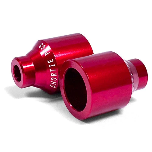 The North Shortie pegs are some of the best scooter pegs in scootering today. These 6061 aluminum pegs are some of the worlds lightest scooter pegs at only 1.5 oz in weight and have a circular shape meant for the smoothest grinding possible. These are some of the shortest scooter pegs at only 36mm in length and are preferred if scraping is an issue during riding. These pegs are great for street and skatepark terrains. Available in blue, teal, purple, wine red, green, black, gold, oil slick, red, silver & rose gold color options. If you’re looking to step up your grind game and expand your bag of scooter tricks, grab some North pegs at Scooter Zone!
