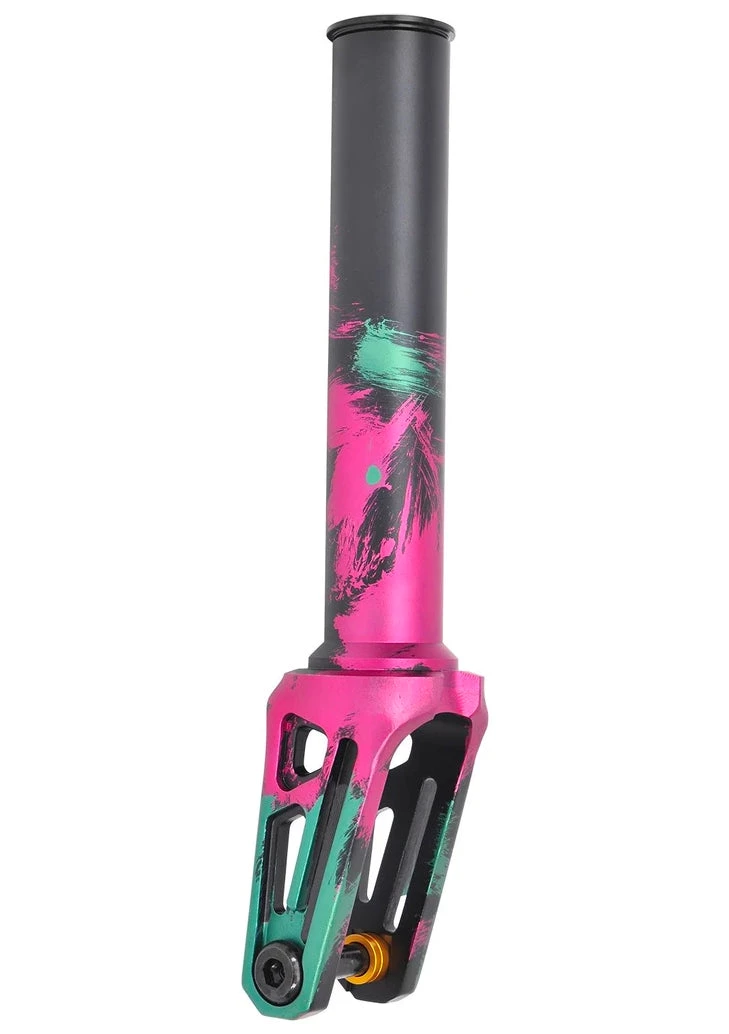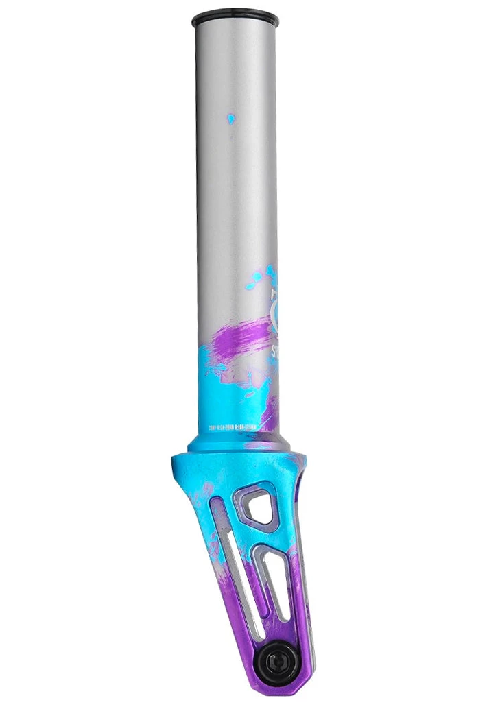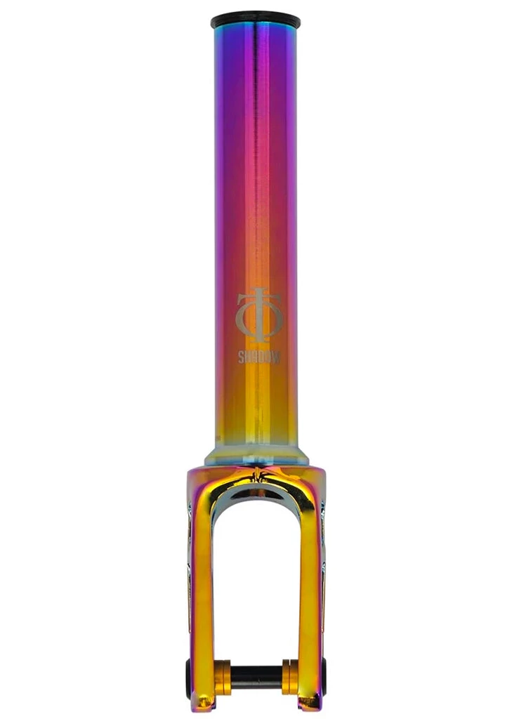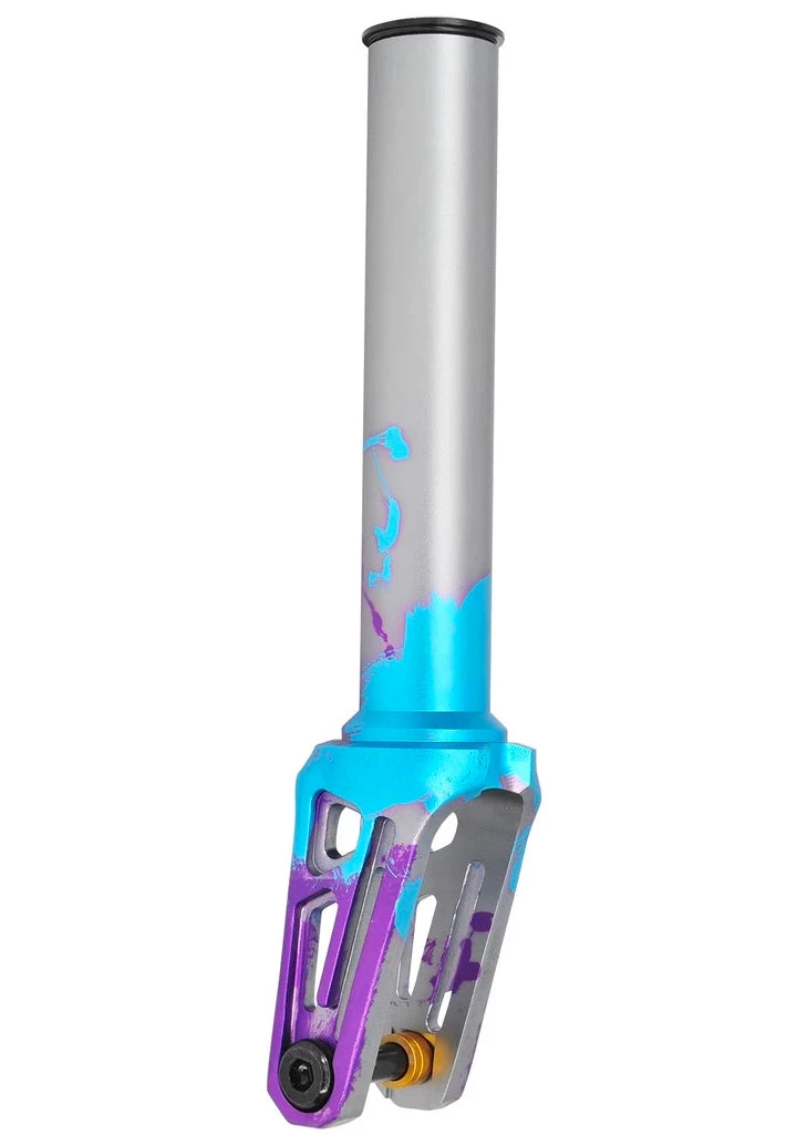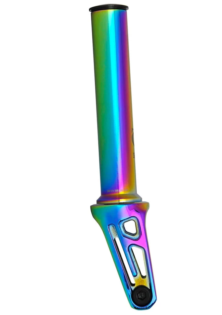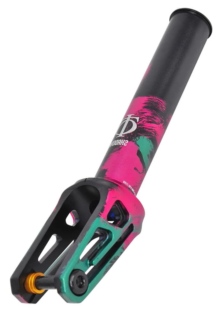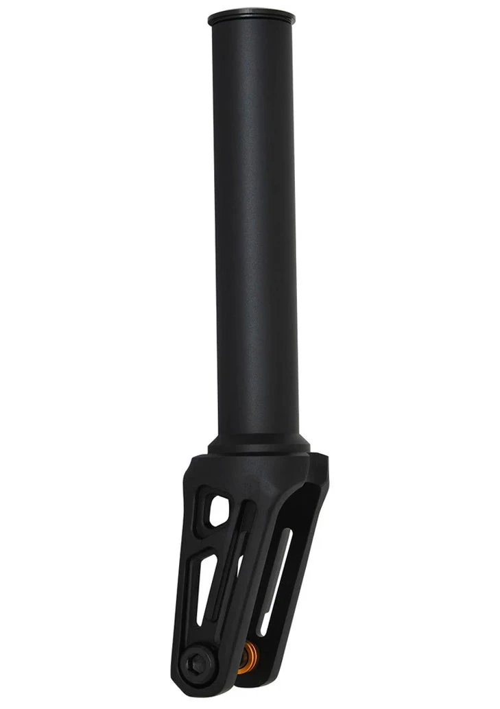 The Shadow fork is one of the most progressive forks on the market. Made from forged 6061 T6 Aluminium, the Shadow fork fits up to 125mm high wheels and a whopping 28mm core with virtually no comprise on weight. With the scooter market changing rapidly, we strongly believe that the fatter core design is on the rise and is here to stay. The fork design is beautifully sculptured and matches seamlessly with your head tube.