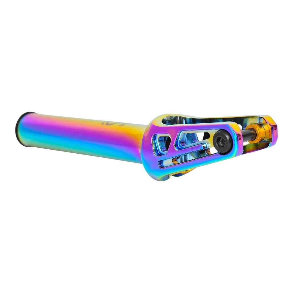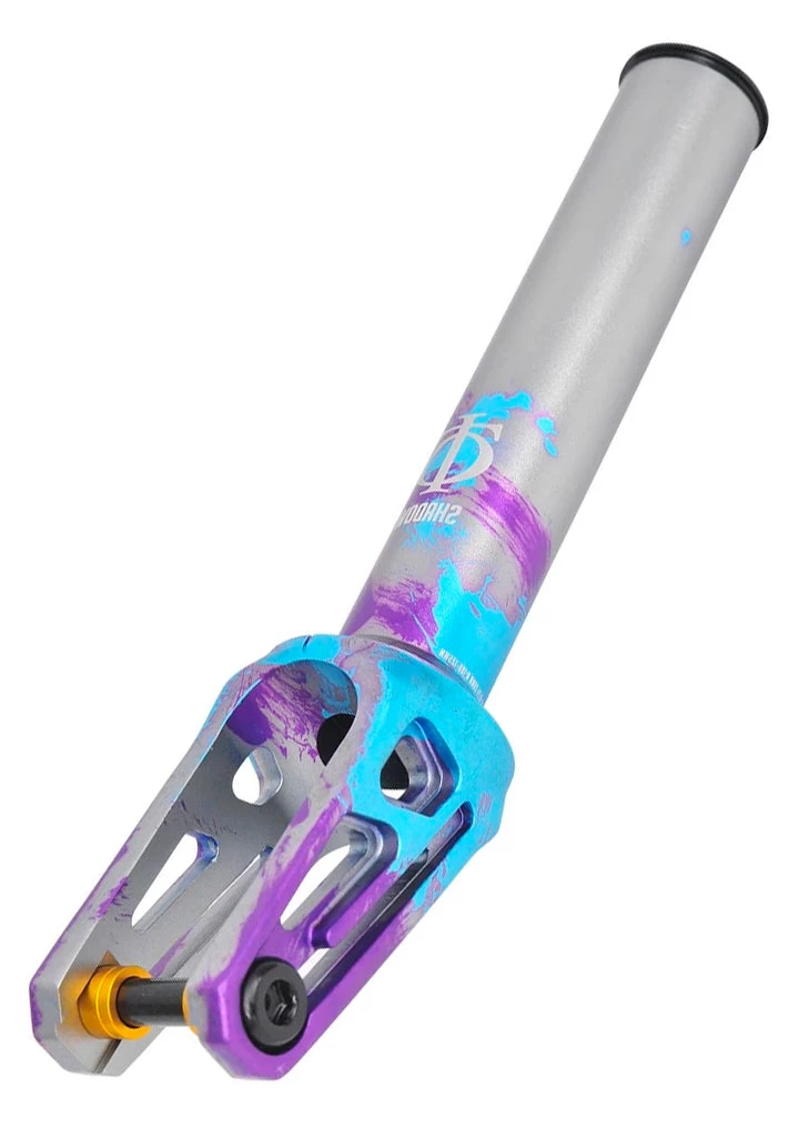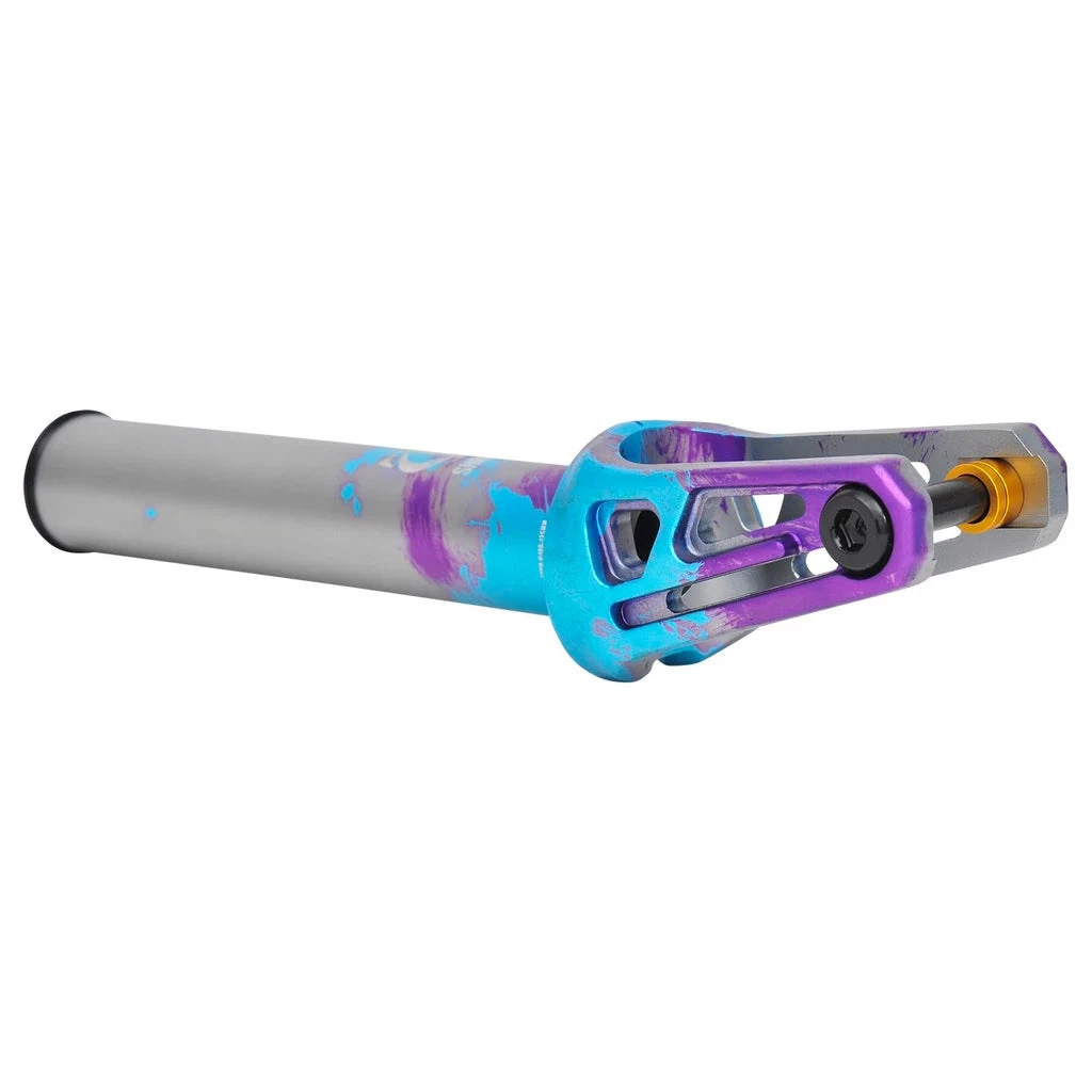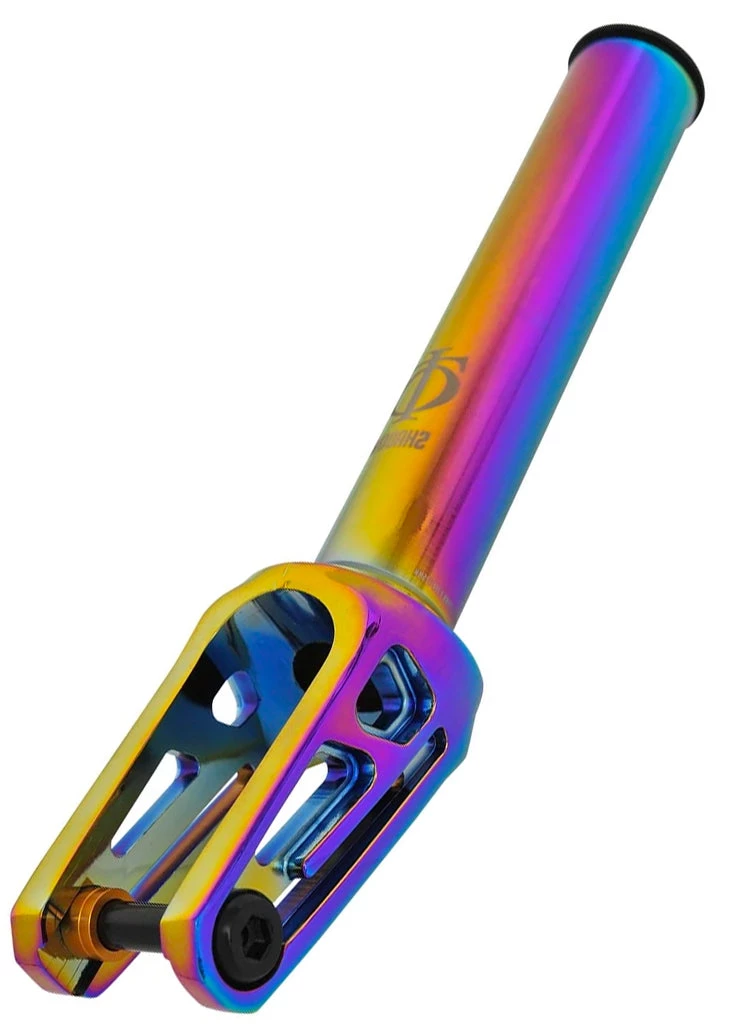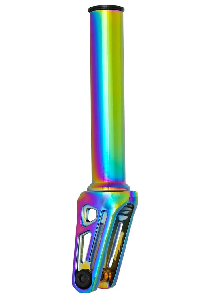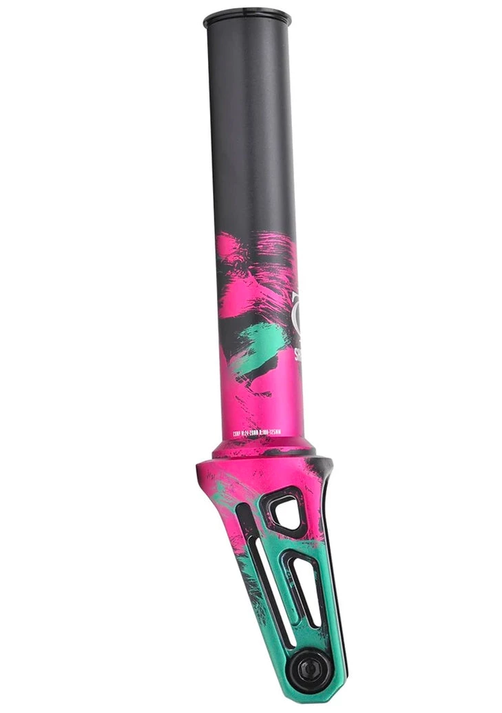 The Shadow fork is one of the most progressive forks on the market. Made from forged 6061 T6 Aluminium, the Shadow fork fits up to 125mm high wheels and a whopping 28mm core with virtually no comprise on weight. With the scooter market changing rapidly, we strongly believe that the fatter core design is on the rise and is here to stay. The fork design is beautifully sculptured and matches seamlessly with your head tube.