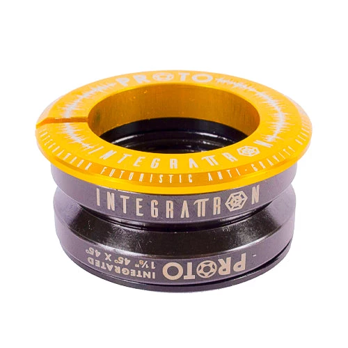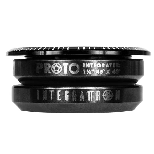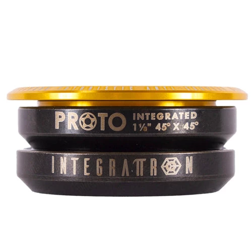 The Proto Integrattron integrated headset is the lightest headset on the market. This has been achieved by reducing the amount of parts needed to perform compared to a traditional integrated headset. Combining the top-cap and snap ring into a single component also adds additional support to the fork tube. Less parts not only increases performance but decreases cost making it the cheapest headset on the market! Available in gold, silver & black. Get yours today at Scooter Zone!