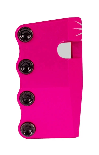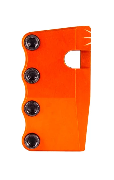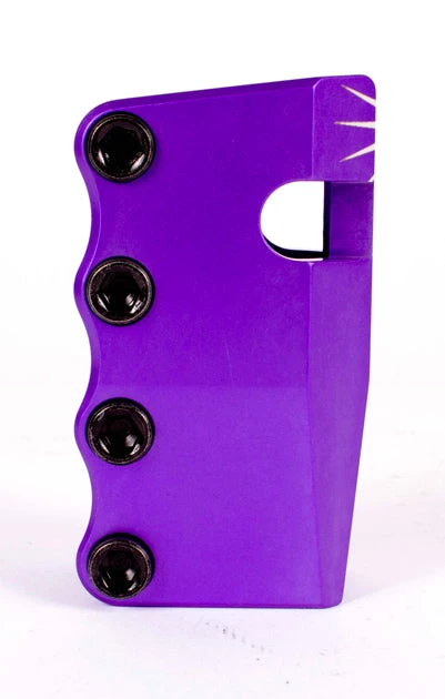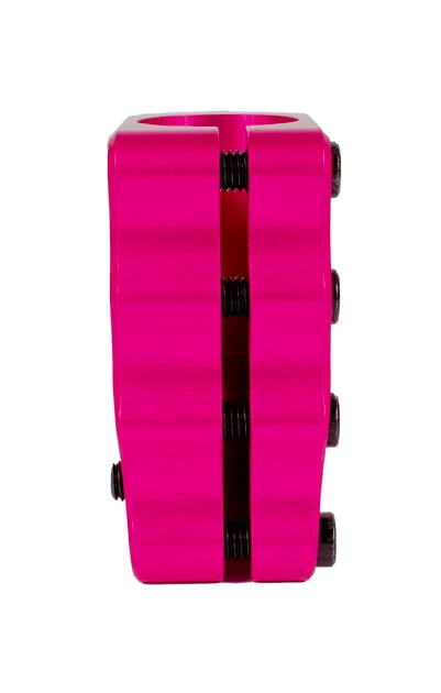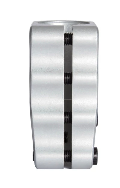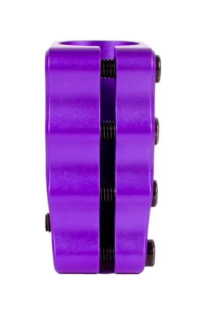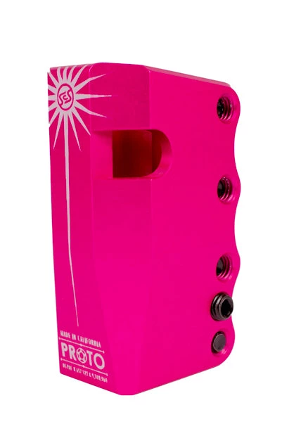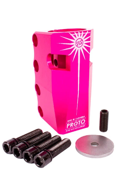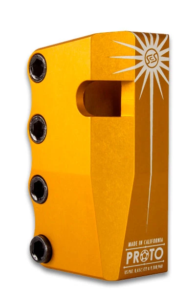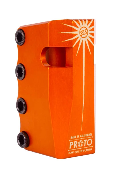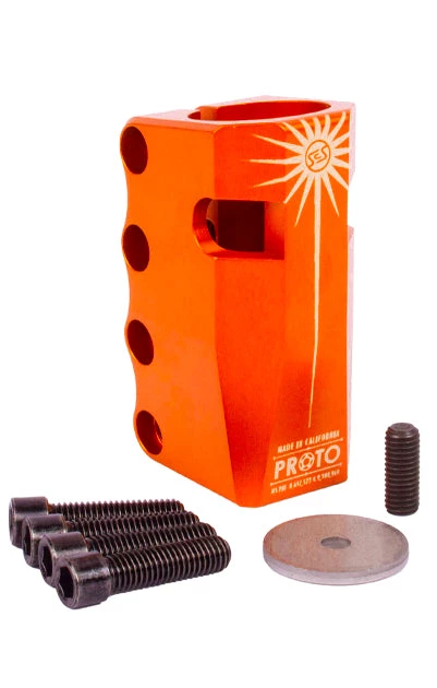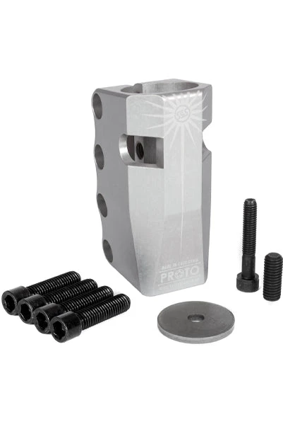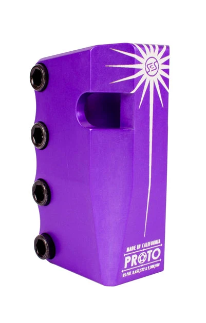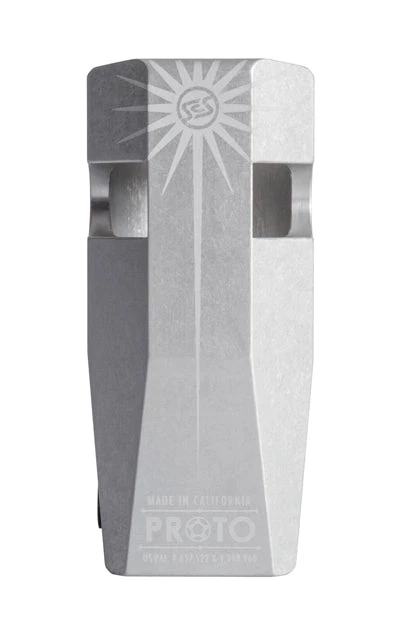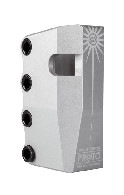 The Sentinel SCS is the most technically advanced Standard Compression System ever created by Proto. Coming in at 3.5″ tall, it offers a full 2″ of handlebar support to accommodate the taller bars we are seeing become more prominent which is over 30% more support than a 3″ SCS. It also features larger 8mm bolts with 6mm allen drives and an offset slot providing 25% more threads for the new larger hardware to tighten into allowing for increased torque and decreased chance of stripping giving it the ability to stay tighter, longer than any other SCS on the market. To top it off, despite being half an inch taller, increased weight was not an issue with its tapered top and base and two cutouts that removed unnecessary material and weight. There is also a brand-new feature called the Spreader-Bolt which can be used opposite of the 4 main clamp bolts to open the clamp for easy installation and removal, totally eliminating the need for the “penny trick”. The SCS logo is placed symbolically as the “third-eye” of the Sentinel in the center of a crown of thorns representing enlightenment and salvation from the ways of the past and guarding the future of scooter design.