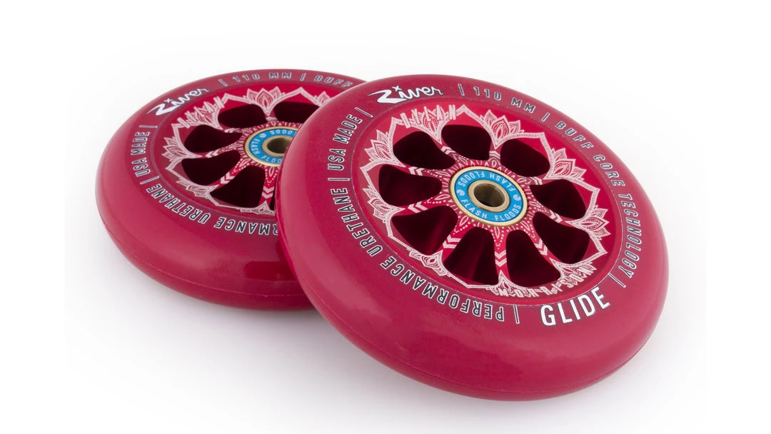 River Glides are smooth, fast and flowy. Hands down the smoothest wheel in the scooter industry and ideal for hitting the park. Featuring BUFF Core Technology to reduce dehubbing. All River Wheels come with bearing removal slots for taking bearings out with ease. These wheels come with High Quality River Flash Flood Bearings Pre-installed. RIVER – STICKERS INCLUDED! All River Wheels come with a 90-day Warranty against chunking. Anodized 6061 T-6 Aluminum Core for Durability. 100% Made in California.