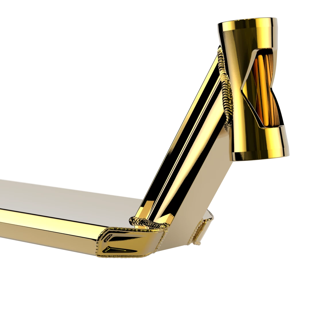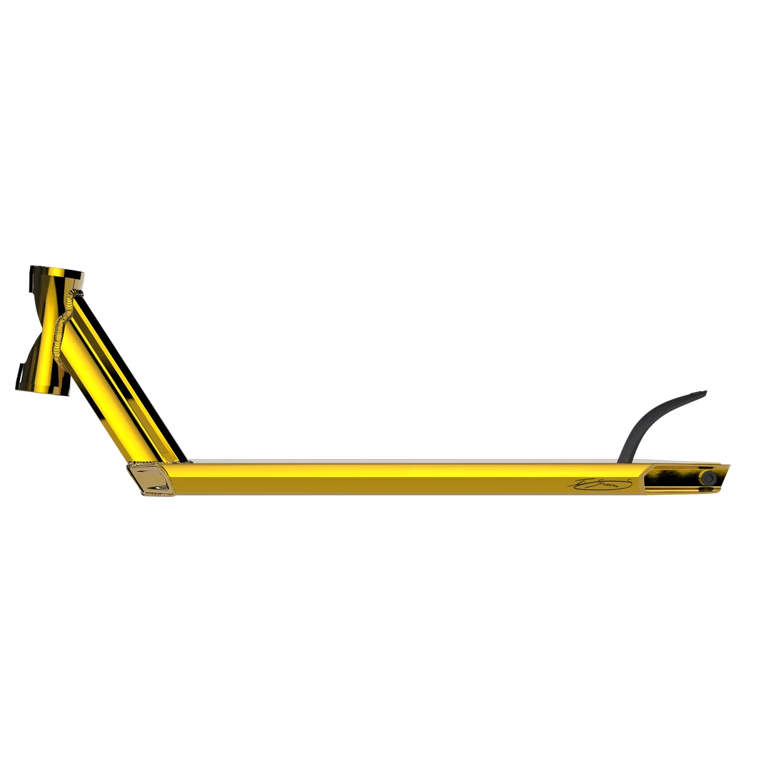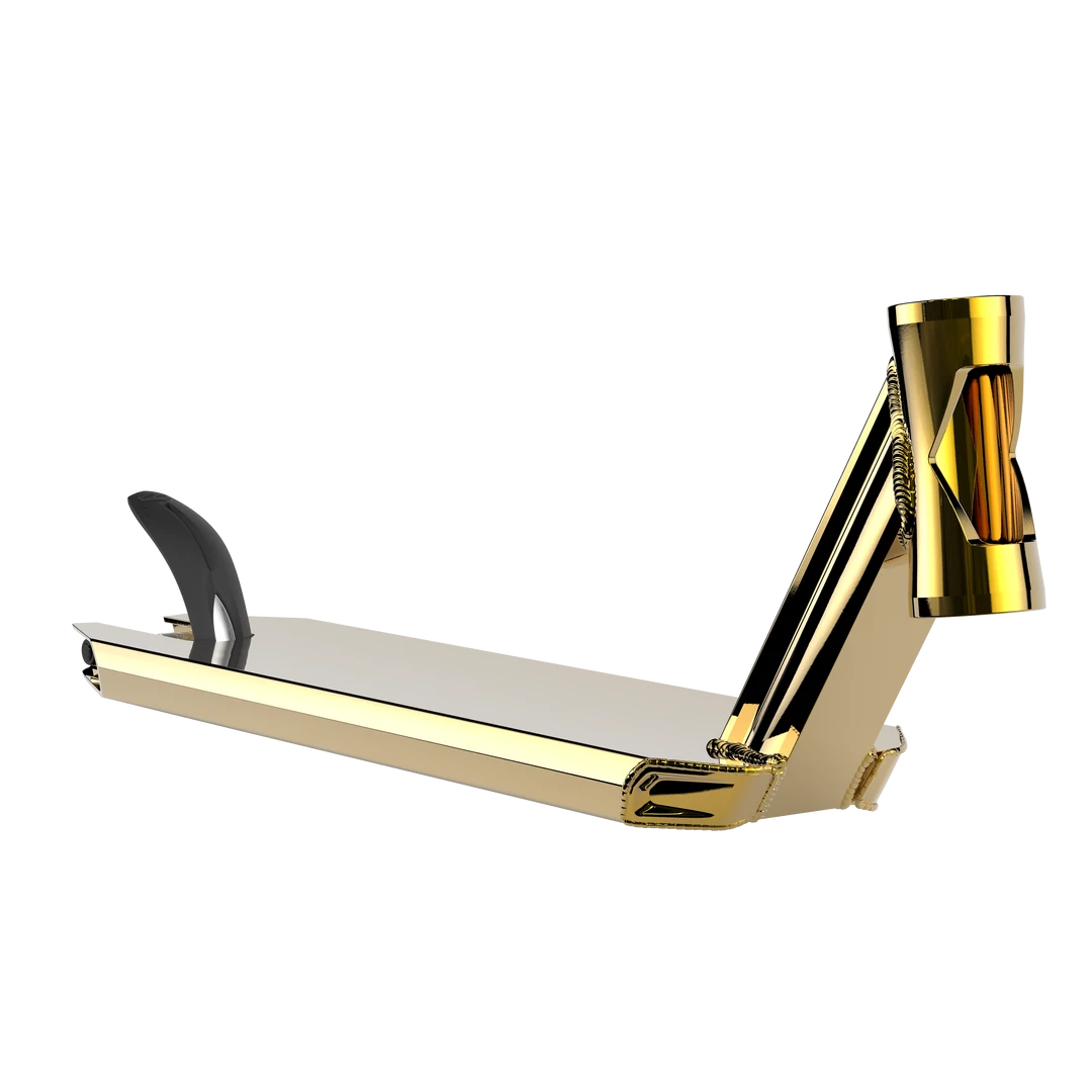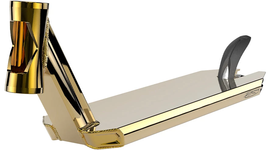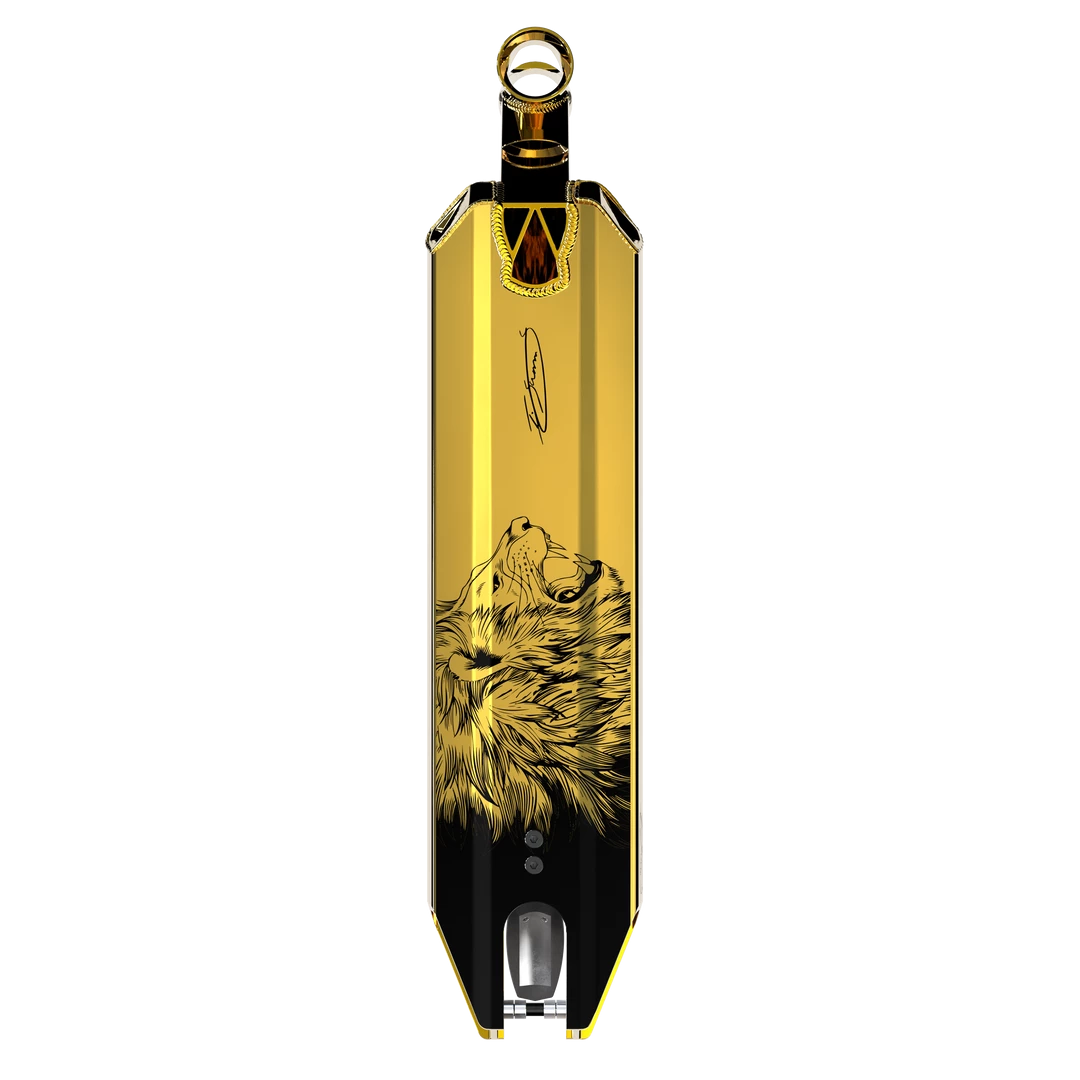 The Isiah Samms Signature deck is a definite work of art and features a 4.75″ x 19.5″ sizing, a mirrored gold finish with a black lion graphic, 120mm x 30mm wheel compatible and a nylon brake. This deck has so many great features including its weight of ONLY 2.7 POUNDS! Grab your Fuzion Isiah Samms Signature Deck today at Scooter Zone!