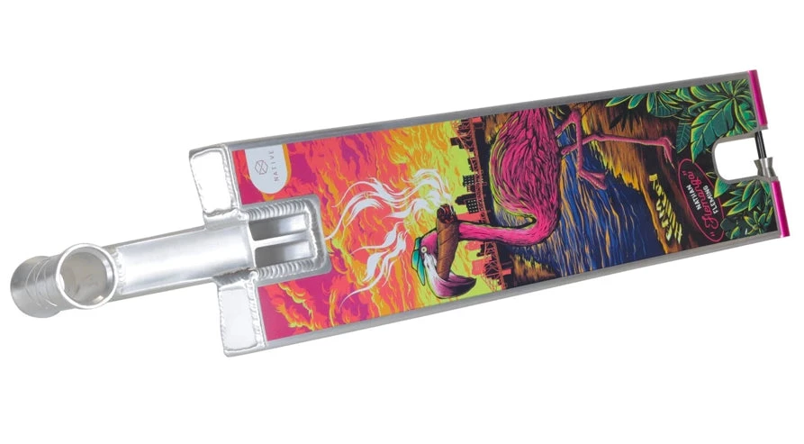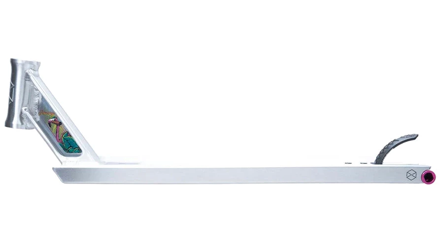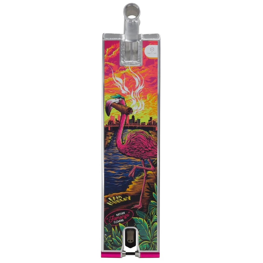 The Advent Refined is the latest offering from Native. Aesthetically resembling the iconic Advent series deck it is a refined distillation, leaving the essence of the Advent in its purest form. An ultra-light, high performance, technical street deck, thoughtfully crafted and rigorously tested by the Native family of dedicated riders. Every aspect of the Advent has been revised, re-tested and perfected to bring you what Native can confidently say is the best feeling scooter deck available with all the technical features and versatile traits the Advent series deck is famous for. Aside from being significantly lighter than its predecessor the Advent Refined features increased blunt space, a larger diameter crook groove, recessed and reinforced blunt plates, radial concave, a lightweight nylon brake and a mostly flat bottom with a mellow channel running down the centre for the first time ever on a Native deck. The Advent Refined Kevin Austin deck is available in 6″ x 23″ and has a beautiful raw finish. Nathan Fleming is one of the most stylish and gifted riders on the Native team, so if you’re looking to support Nathan, snatch the Nathan Fleming signature Native Advent Refined deck.
