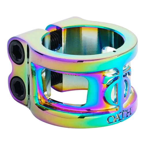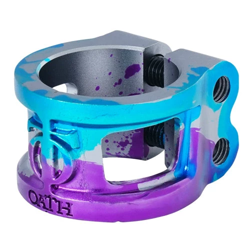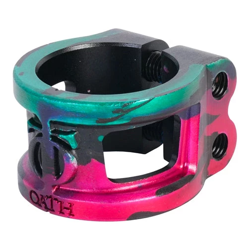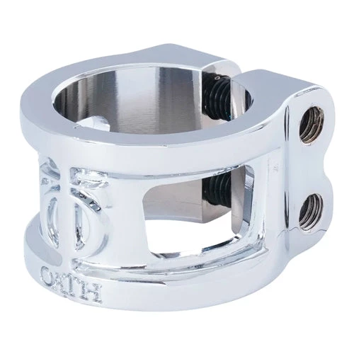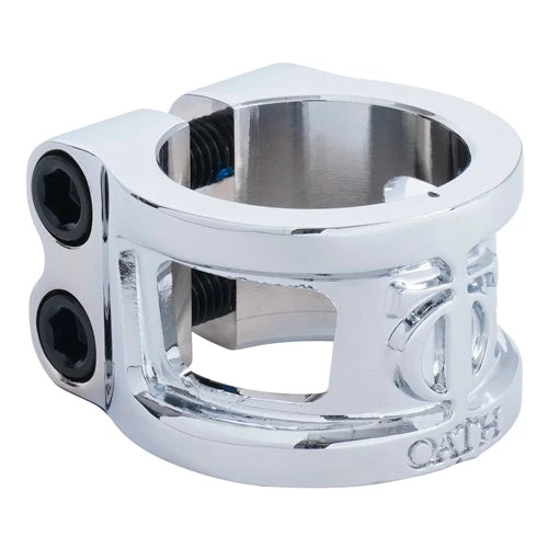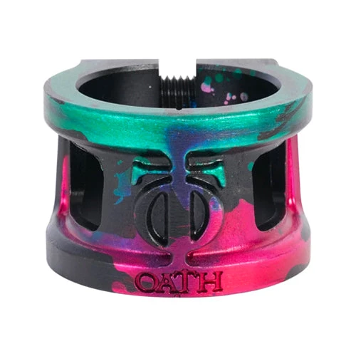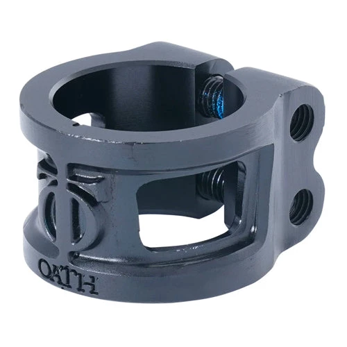 The second-generation CAGE clamp is even lighter! The Oath double clamp is BOLD, STRONG and LIGHT. You might be wondering how this is possible? Utilizing our team of knowledgeable scooter nuts and manufacturing experience, we’re confident we’ve nailed it. The Cage is the perfect combination of durability, strength and design weighing only 85g.