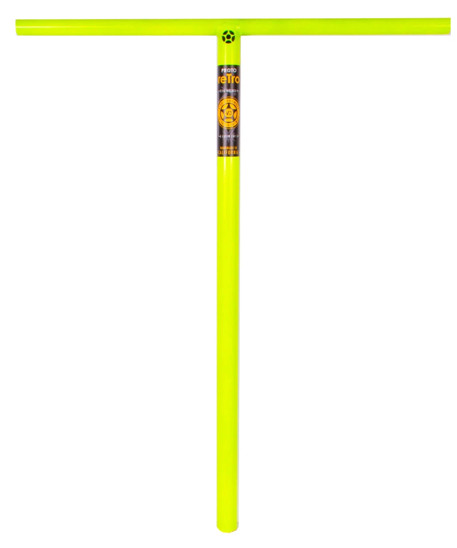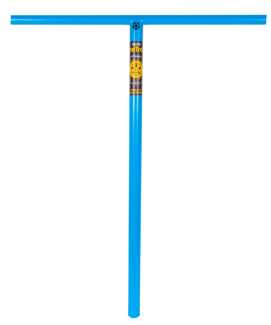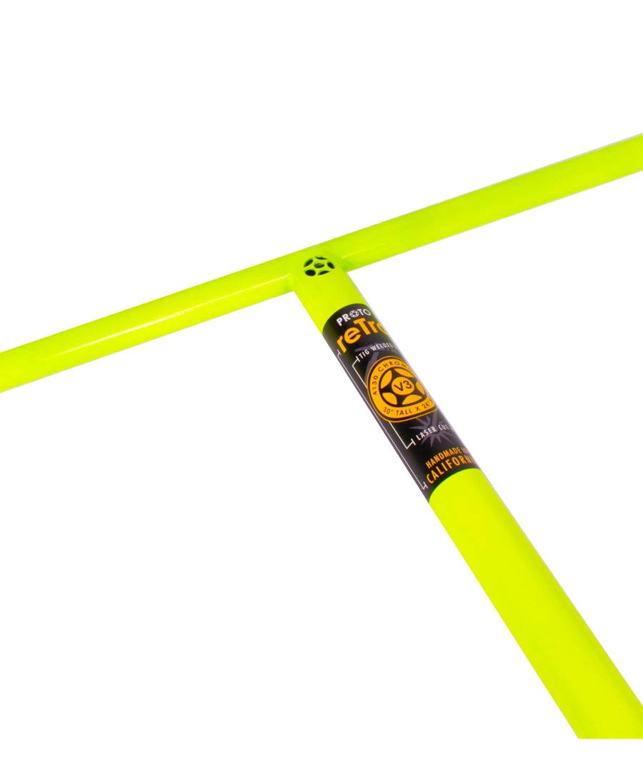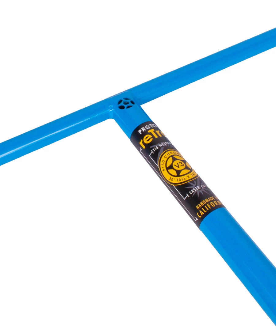 PROTO reTro V3 handlebars come in at 30″ tall x 24″ wide, making it one of the largest “T” bars in the industry. Not only did the PROTO retro V3 increase substantially in width and height from the V2, it also increased the thickness of the 4130 chromoly tubing used for the crossbar and the steering column to increase strength. Complete with a laser cut PROTO logo. NOTE: Appearance WILL vary. No two bars are alike! ATTENTION: SCS COMPATIBLE ONLY!