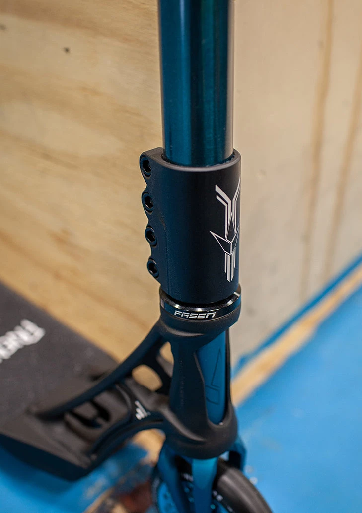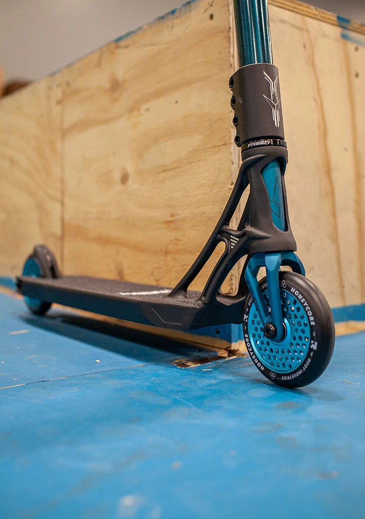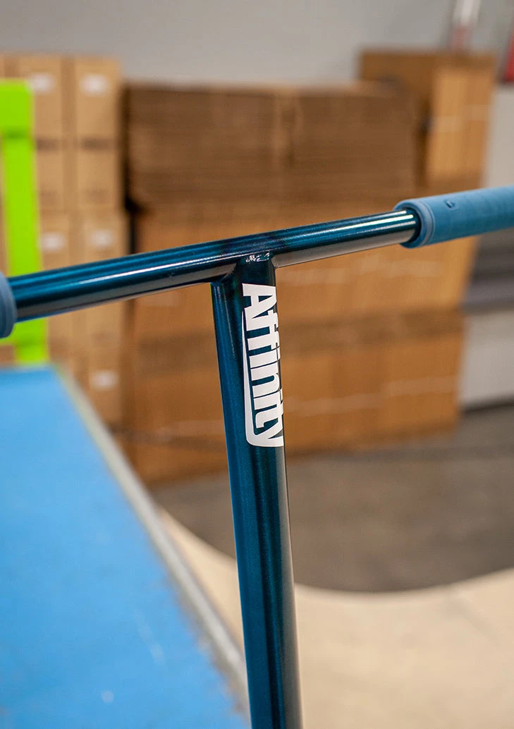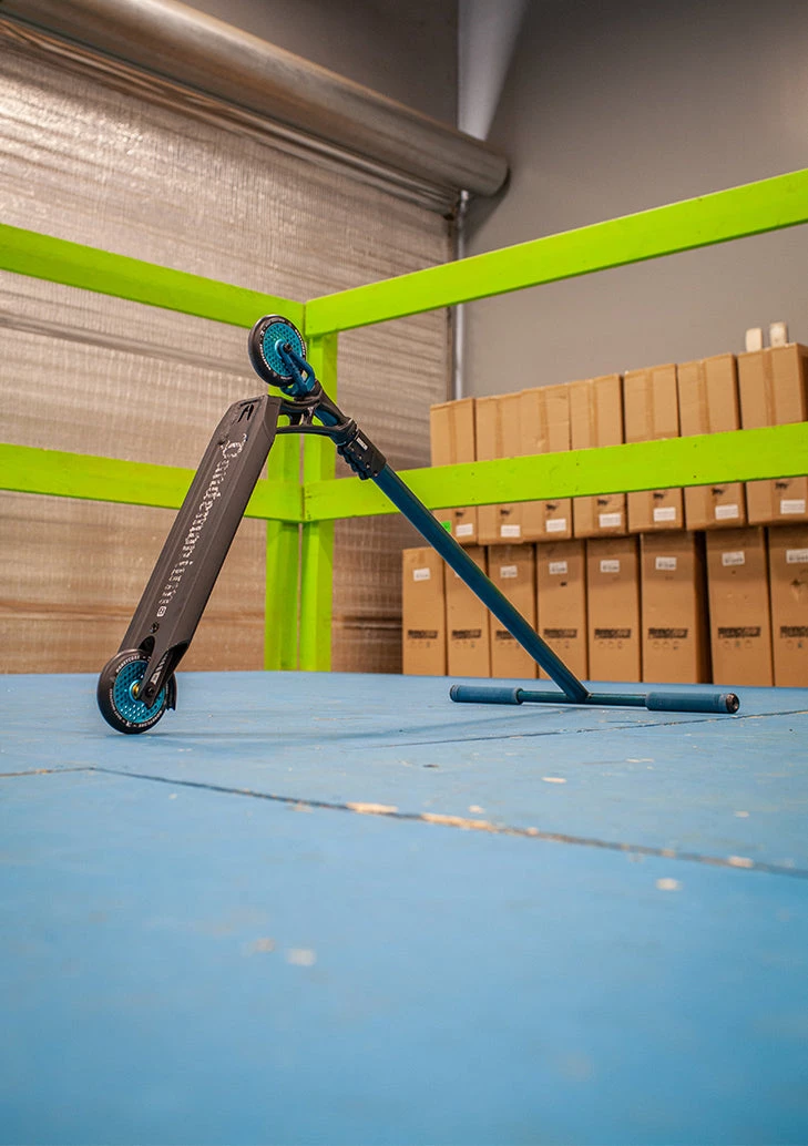 The ‘Blue Buccaneer’ Custom build is a great scooter for anyone looking to get something that can take them to the next level of scooter riding. This scooter is very well fitting to someone who is looking to get a scooter that is lightweight and easy to throw around but also very strong and solid. This scooter is super strong yet versatile and nimble with its chromoly bars, its SCS compression system, and its smaller sized light deck at 4.7 inches wide and 19.7 inches long. This scooter is super good for any kind of trick combos and variations at the skatepark and it could definitely ride in the streets just as good too. This thing is sure to be rolling smooth wherever you are because of its lightweight 110mm wheels. The ‘Blue Buccaneer’ Custom Build is a great step up from any kind of complete scooter and it is even a great option for a first scooter!Â
