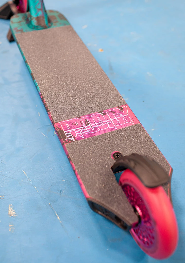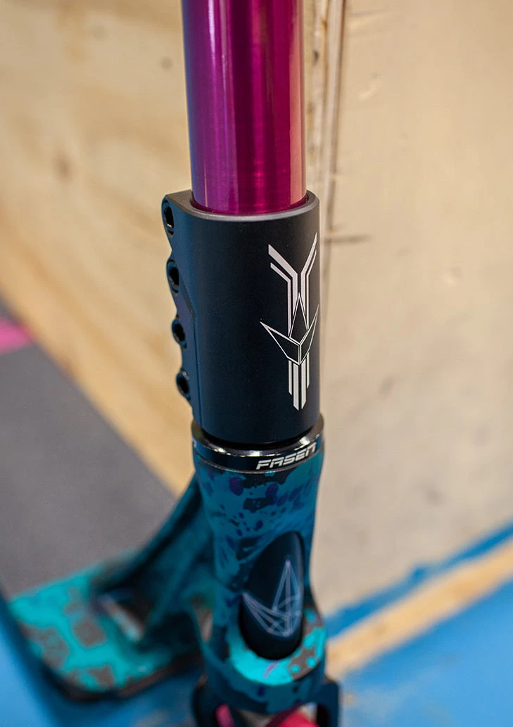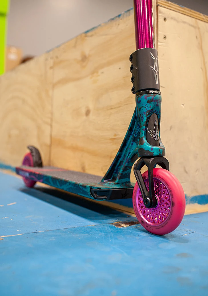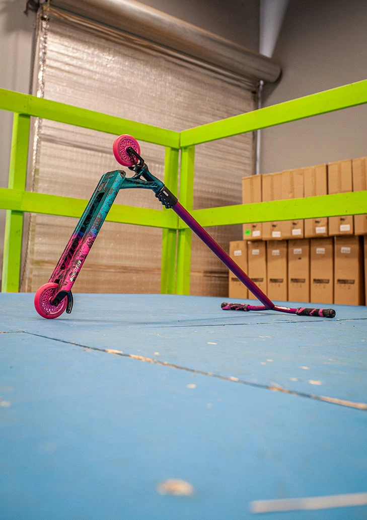 The ‘Dusk’ Custom Build is a great scooter for someone looking to go to the next level of scootering. This scooter is one of the first steps above a complete scooter which makes it one of the best to go to after someone has ridden a complete and wants to upgrade. With its chromoly bars, SCS Compression, and smaller sized deck, it is versatile and lightweight. This gives it the ability to be thrown around very easily in tricks and maneuvers at the skatepark or out in the streets. The ‘Dusk’ Custom Build is a great choice when it comes to upgrading from a complete or just getting a first scooter!Â