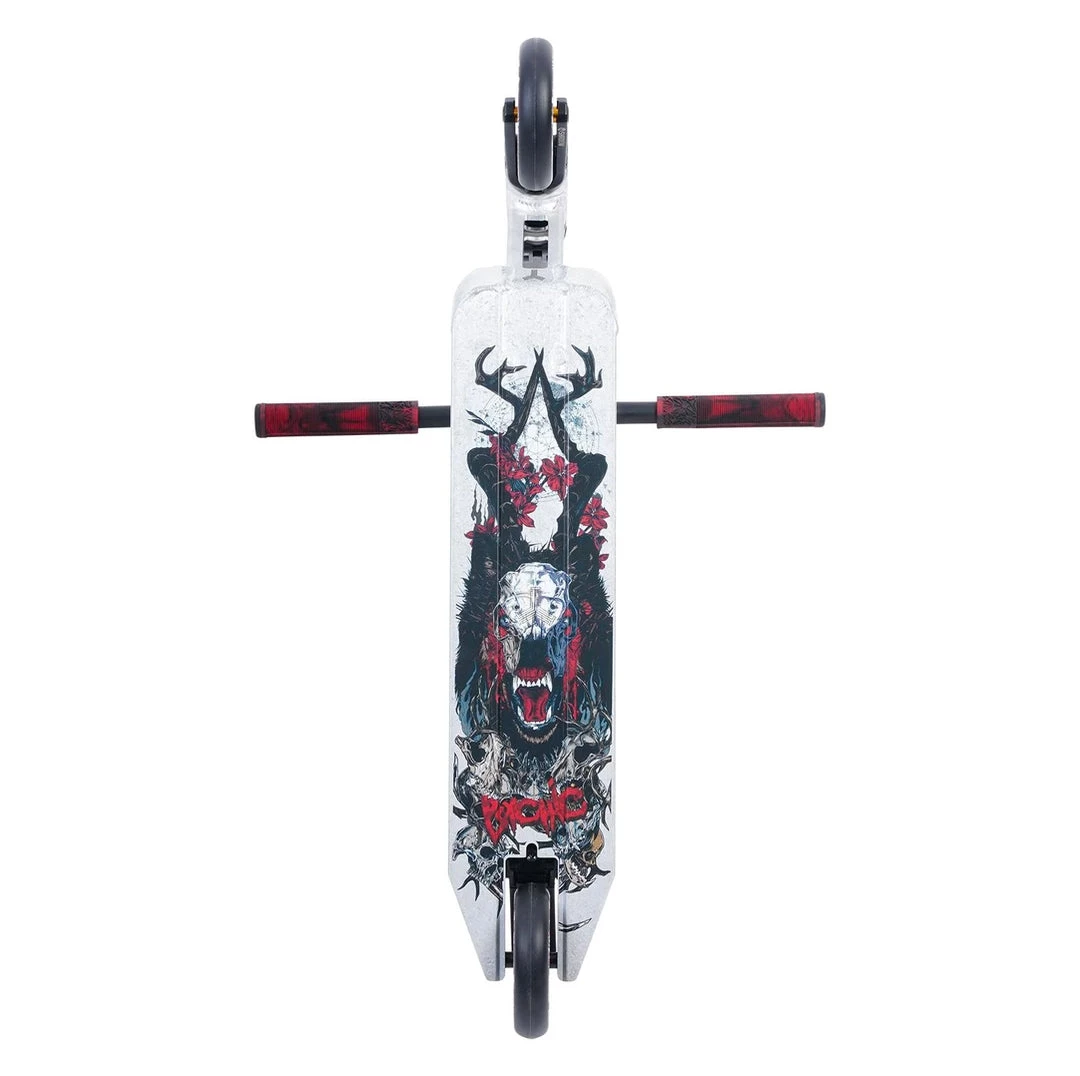 The Psychic Totem has the colour scheme to appeal to just about all riders. The raw finished topped off with the full length hand drawn graphic and hints of red throughout the grips and deck ties in perfectly with the Oath Lattice signature Billy Watts wheels. This complete comes with a pair of our Smuggler 7 series Aluminum bar and the Triad exclusive Clear Cast grip tape.