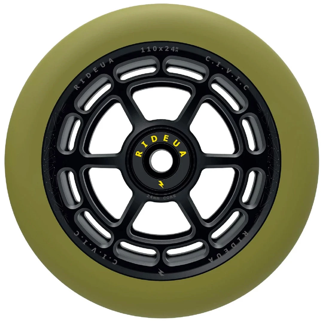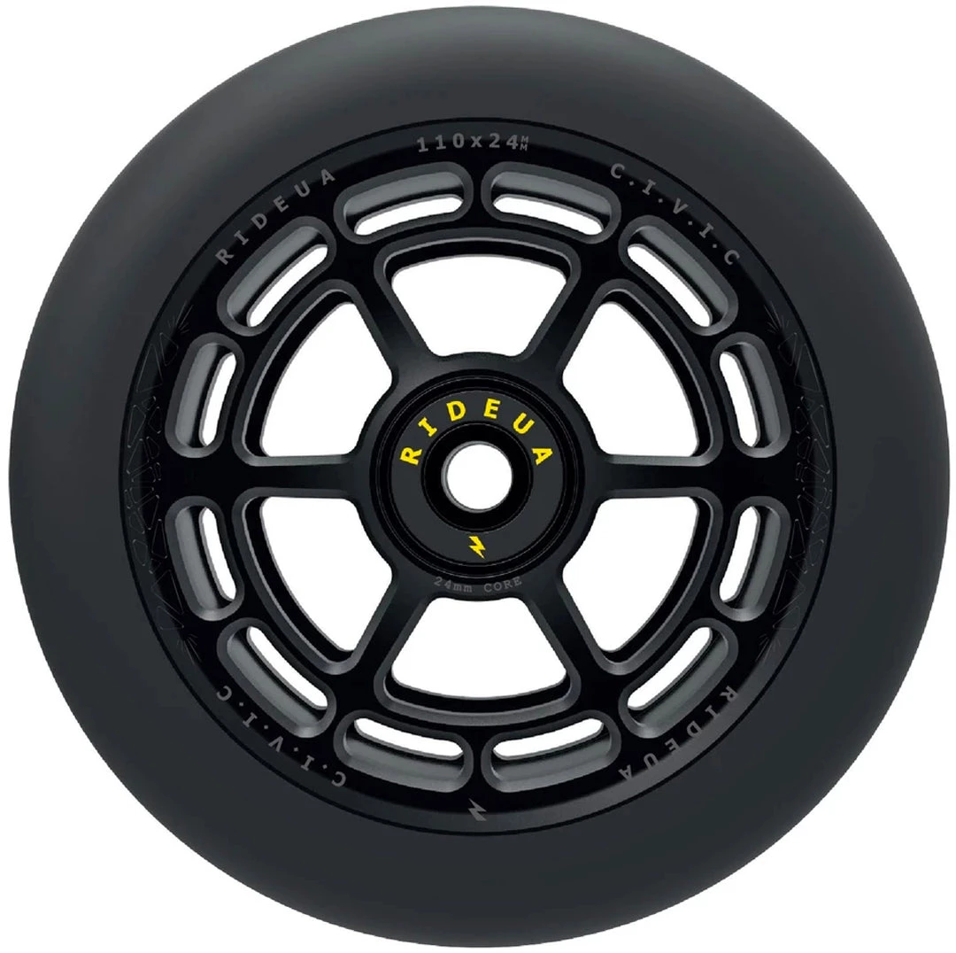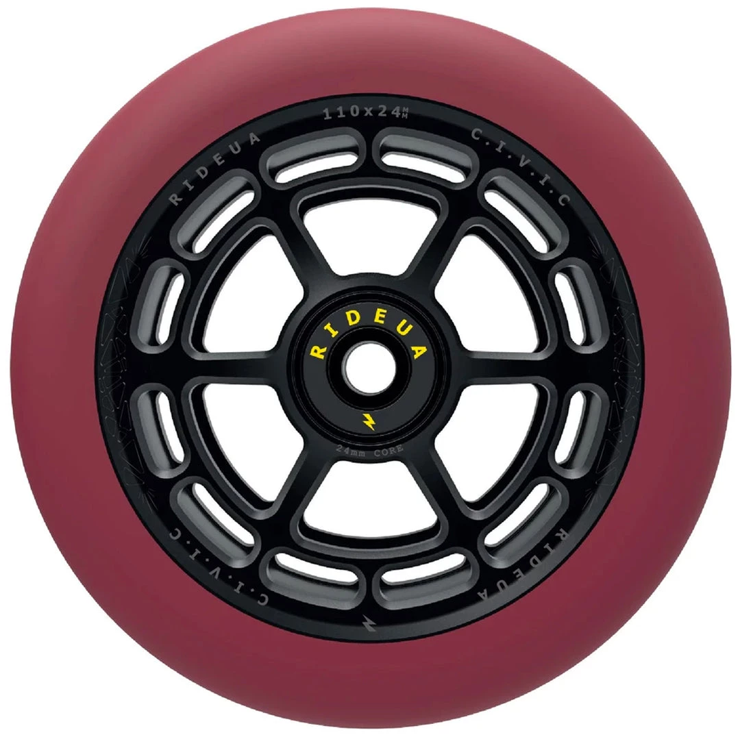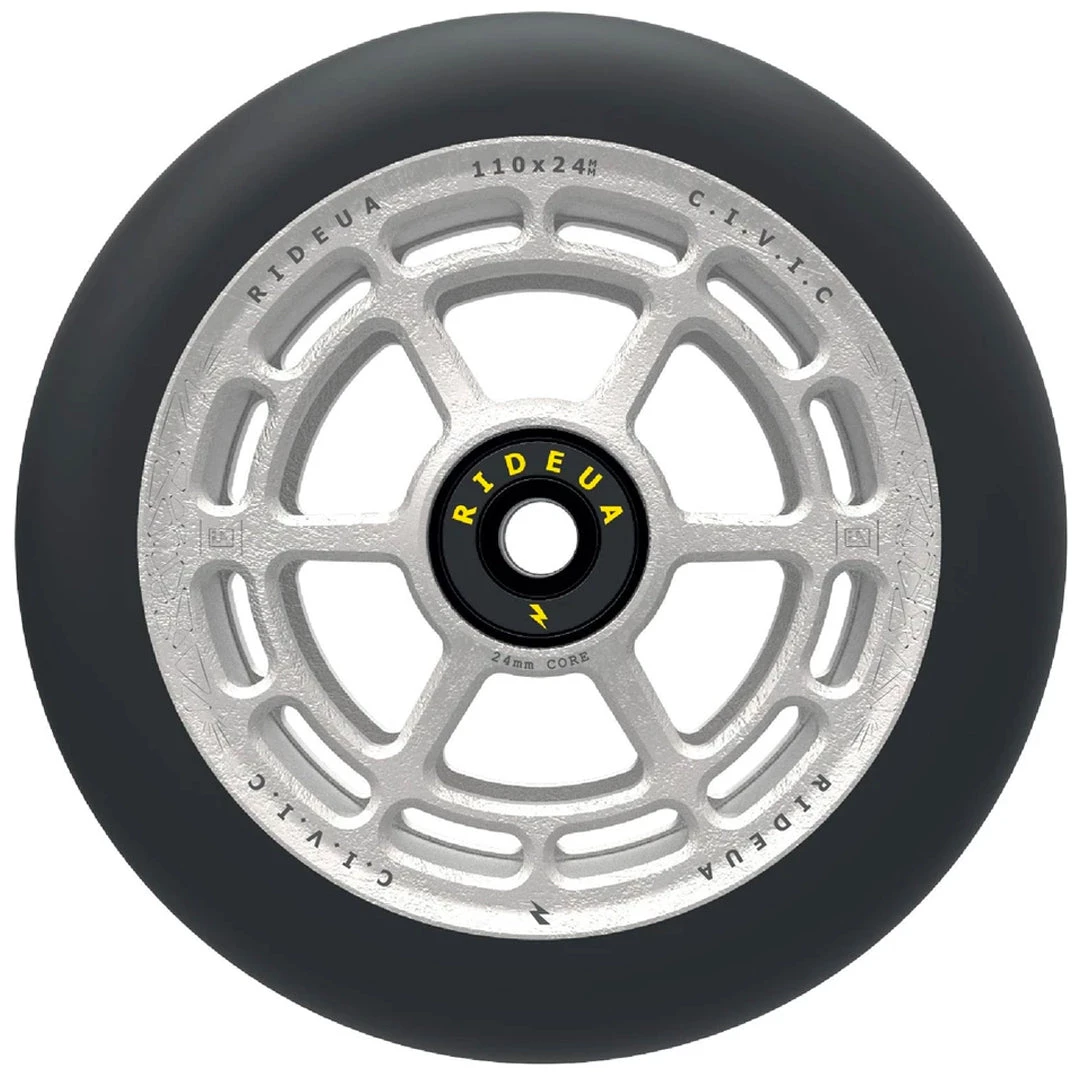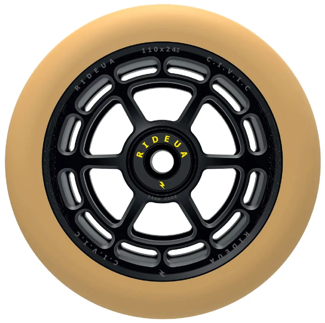 The UrbanArtt Civic wheel has been designed to handle high impacts and lateral stress. The thicker PU offers a softer feel on those big drops but still provides a good balance of speed and durability. It has a wider contact patch than many other wheels with the same width which will give you greater control and grip. UrbanArtt has kept the weight down by a full CNC two-piece hollow core technology rather than traditional extrusion. The design detail is incredible, the compatibility is excellent by maintaining standard 24mm wheel cores on both sizes. Finished with a solid set of high impact, yet smooth rolling bearings. The wheel colors are coordinated with UrbanArtt’s Civic grips and grip tape to enable the creation of awesome custom completes!