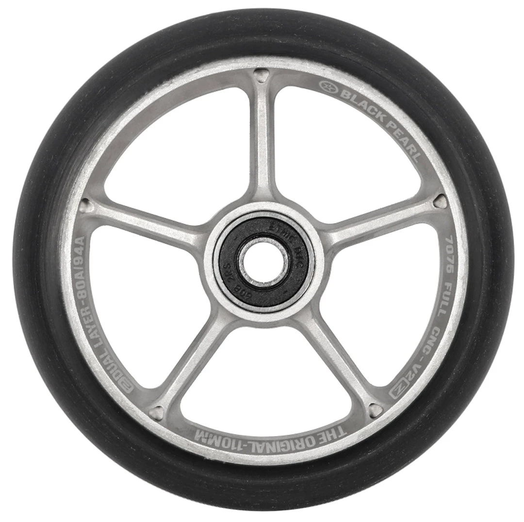 The legendary Black Pearl double layer wheels have almost become a myth in the pro scooter world for many reasons. One of which is the dual layered urethane hardnesses. This wheel comes with an 80A urethane which is then covered by a 94A urethane which is INCREDIBLY hard. Probably the hardest of all scooter wheels in the world. The 80A urethane keeps the wheel feeling soft and nimble while the 94A urethane keeps these wheels EXTREMELY fast. We’re going to go out on a limb here and say these are probably one of if not the world’s fastest scooter wheels….hence the price tag. The core design may seem simple at first glance, but look closely and you can see the true attention to detail that these wheels are consisted of. All of the features of this wheel are combined to make one of the lightest scooter wheels as well as fastest out there. This is more than just a scooter wheel…this is a work of art. Available in a double layer as well as a single / simple layer option.